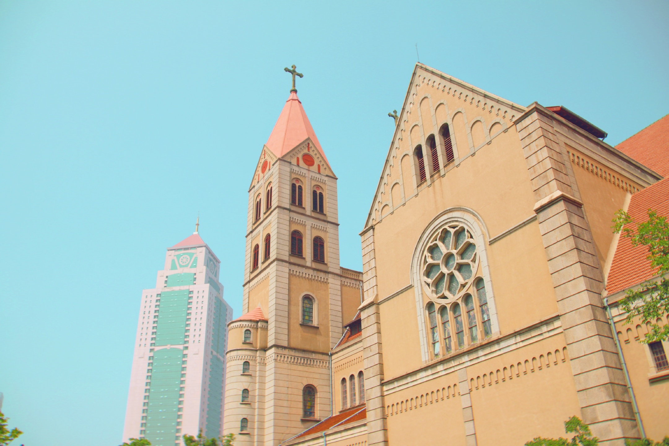 也称圣弥爱尔大教堂。位于青岛市市南区浙江路15号,是青岛地区最大的天主教堂和哥特式建筑,也是中国唯一的祝圣教堂,建于1932~1934年,占地面积11480平方米,建筑面积1877平方米。建筑平面呈十字形,教堂主体两翼,各耸一座尖塔,塔高56米,顶端各立有一个4.5米高的巨型十字架。大厅高18米,可纳千人,内部采用意大利文艺复兴时期的装饰,穹顶绘以圣像壁画。1992年,被列为省级文物保护单位。2006年,作为青岛德国建筑群之一,被列为全国重点文物保护单位。