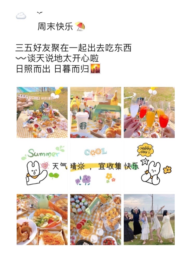 🌈适合周末晒图文案/周末闺蜜聚会/周末聚会逛街文案/周末游玩/朋友圈晒友谊/周末朋友圈九宫格文案分享💫