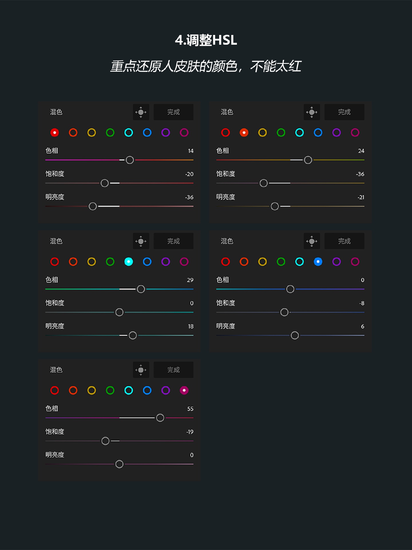 参数不一定适合所有照片,调色的时候还是得具体根据图片情况来微调