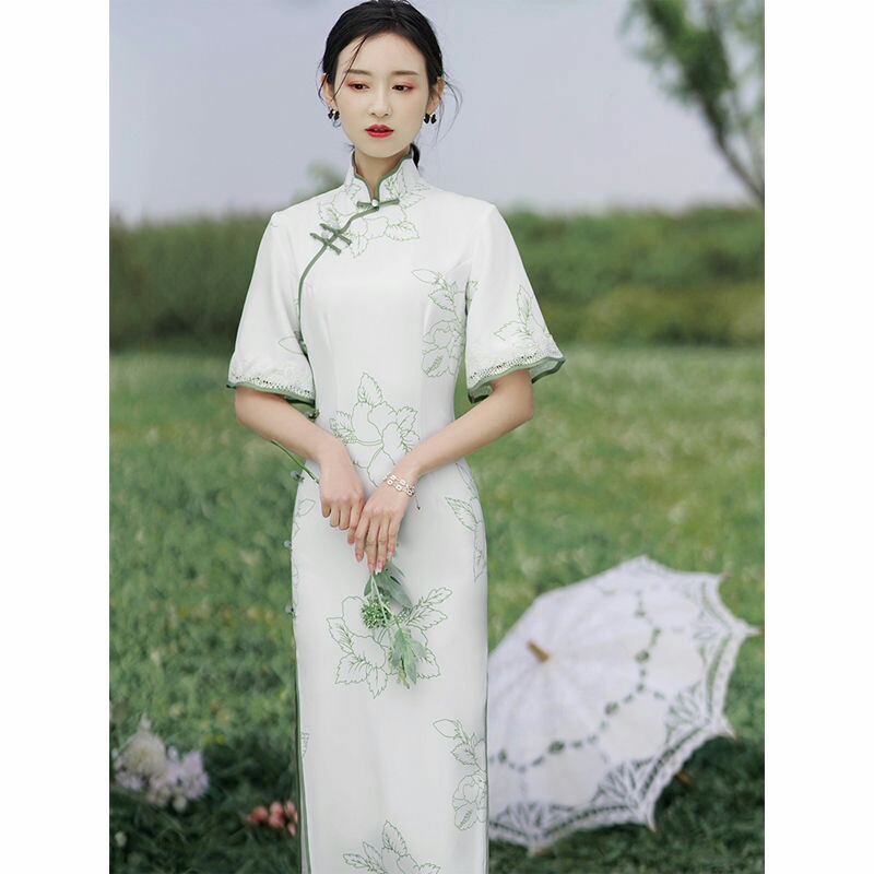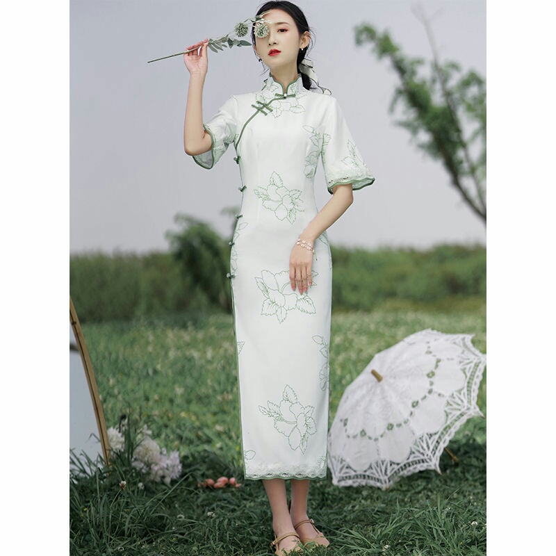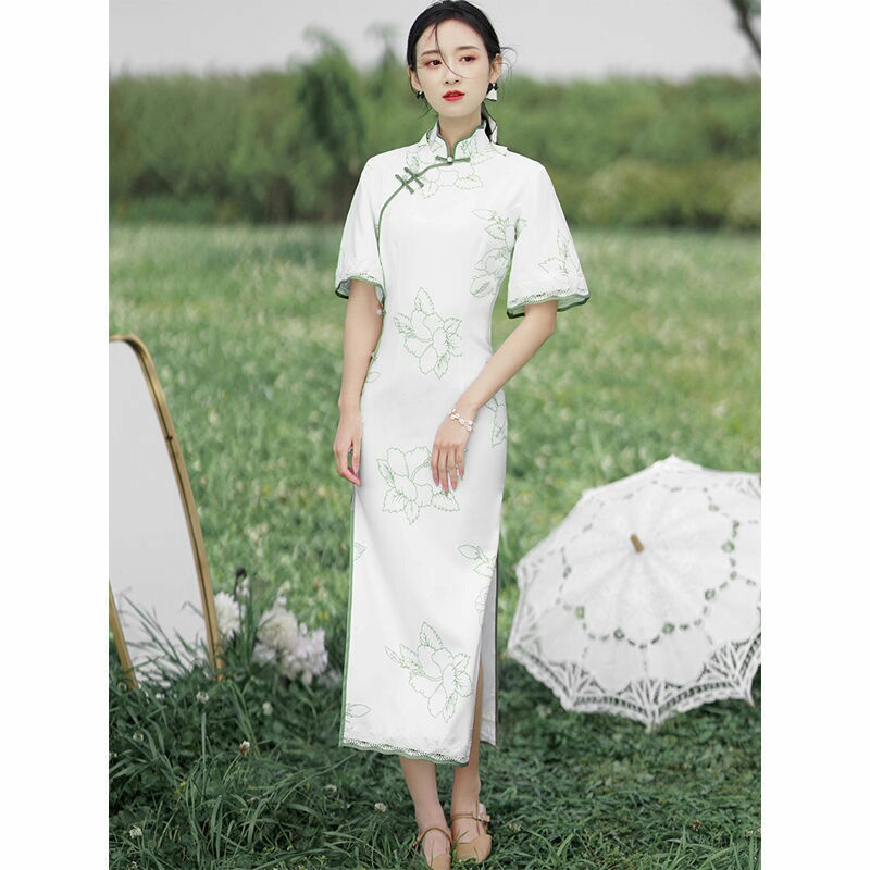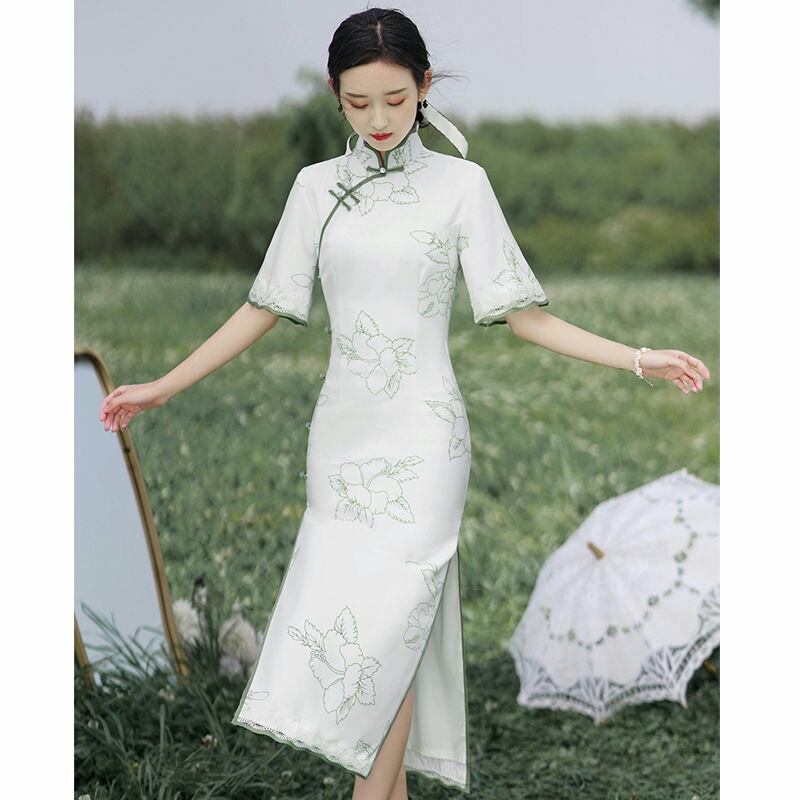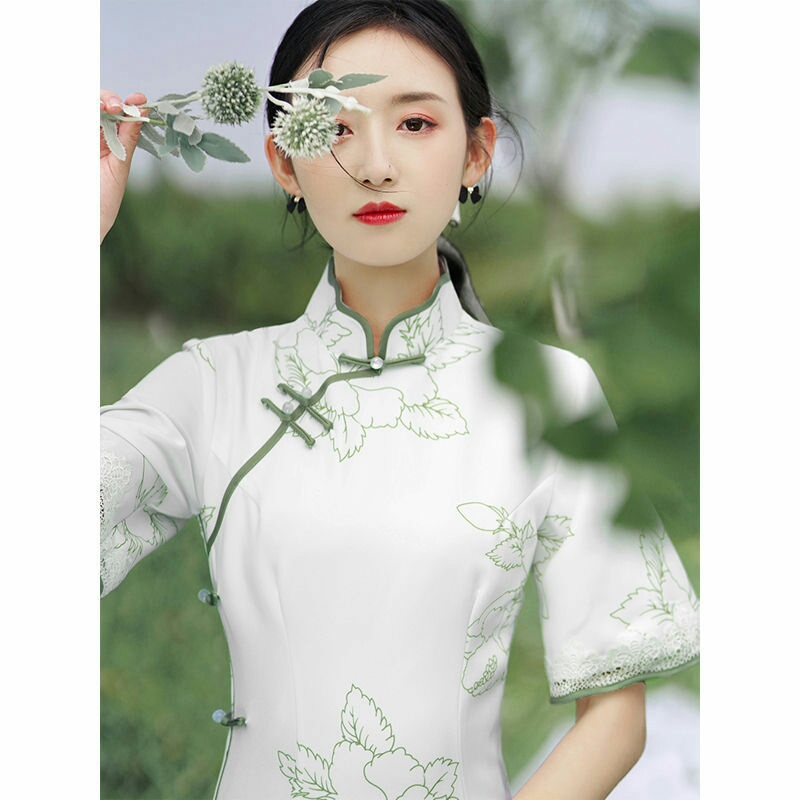 白色旗袍改良版中国风连衣裙