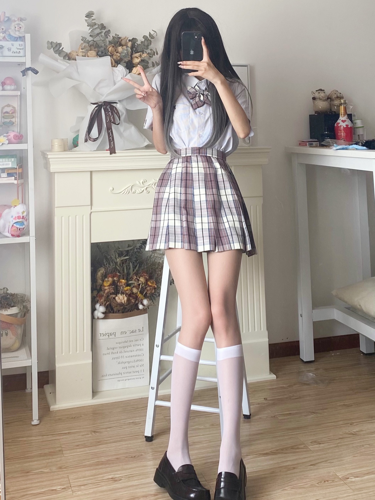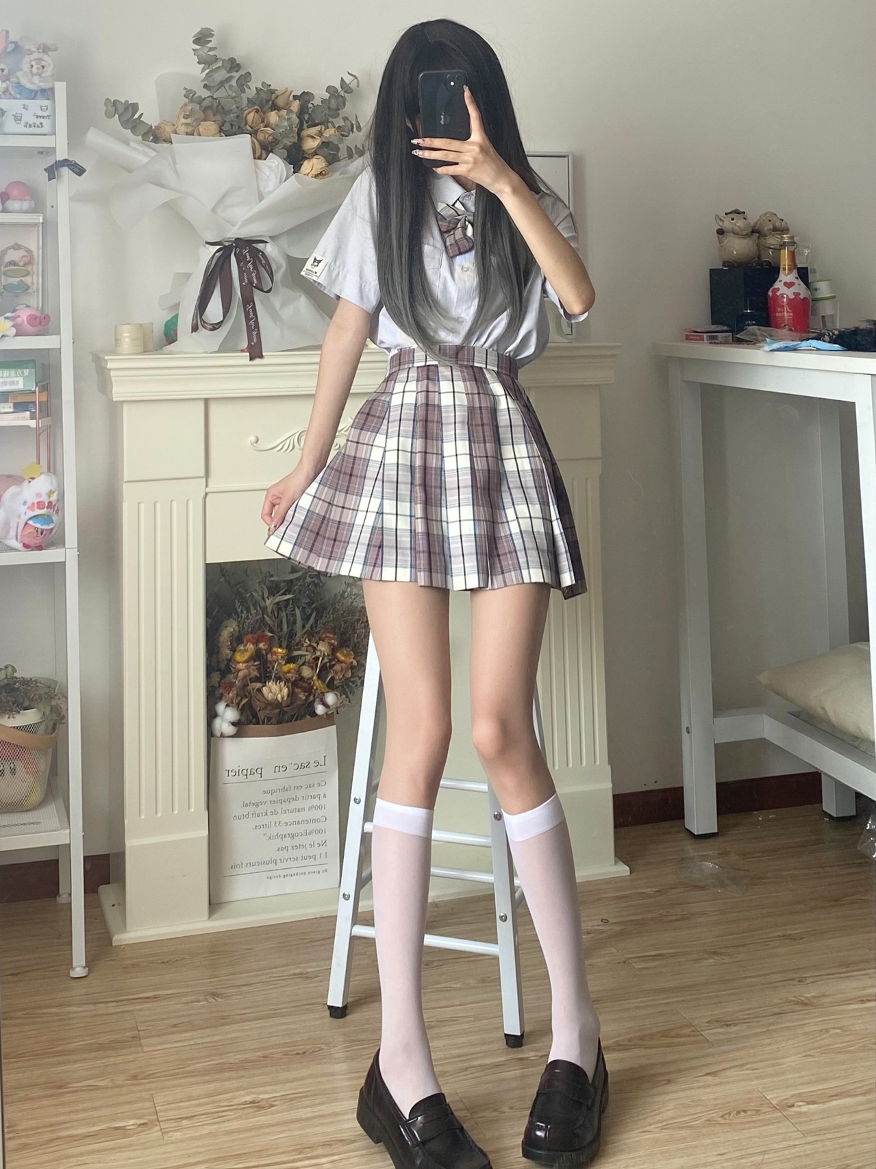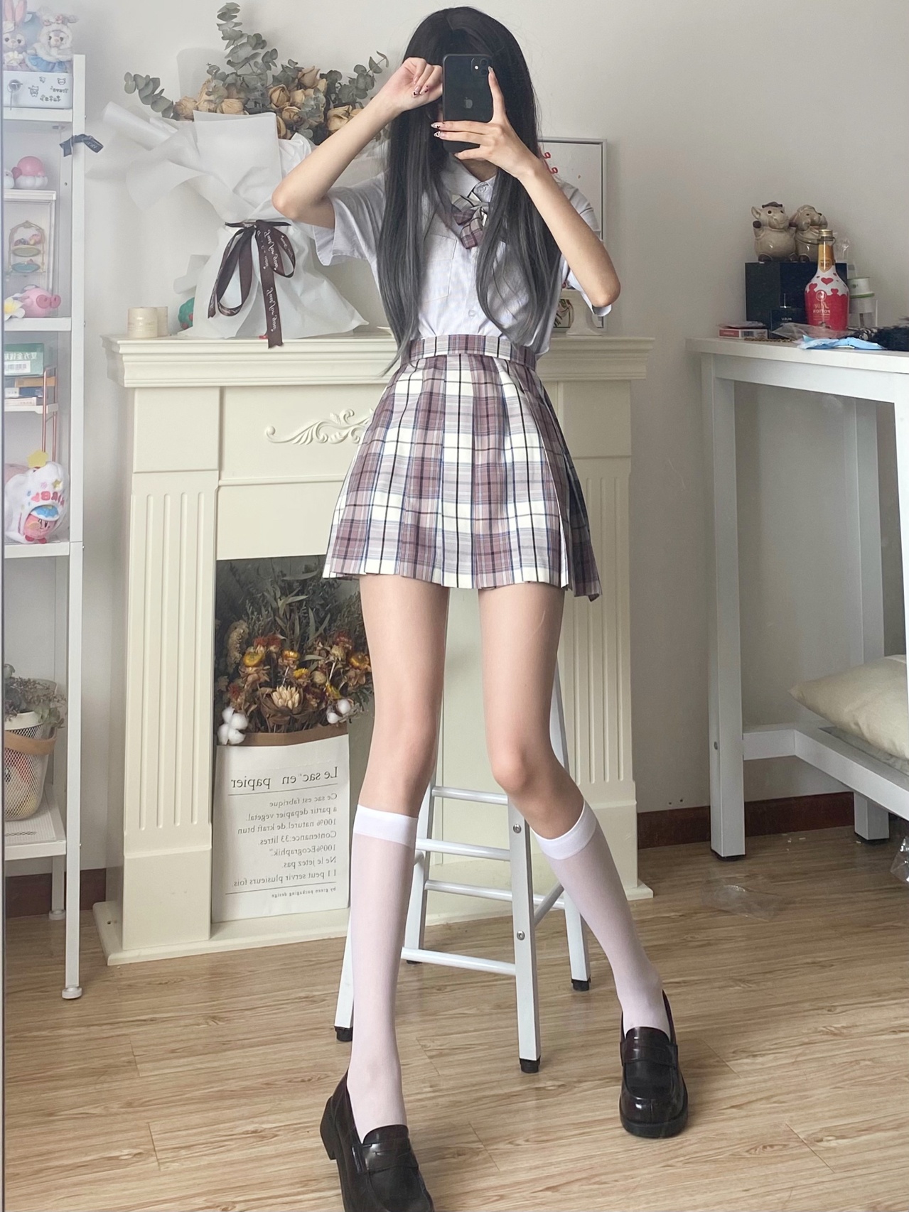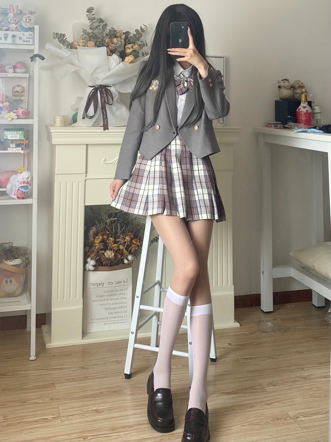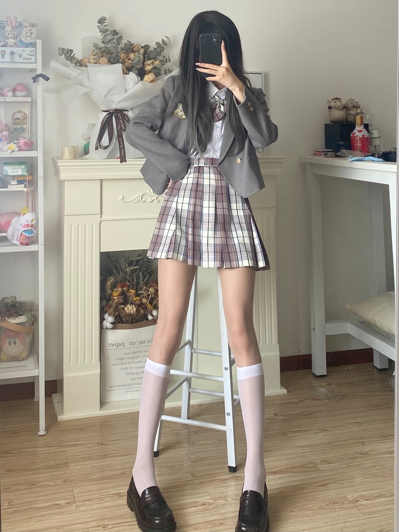 jk制服穿搭|粉格➕灰西超乖学妹穿搭💗