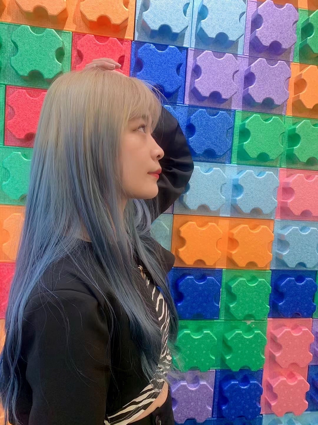 同色系的颜色搭配突出发色层次,白金色的打底发色让褪色更慢,搭配冰蓝色的浅色调,让头发如同海水流动时 一深一浅的动感🌊