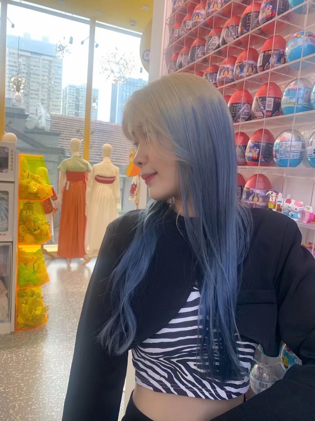 双色染,白金色搭配冰蓝色