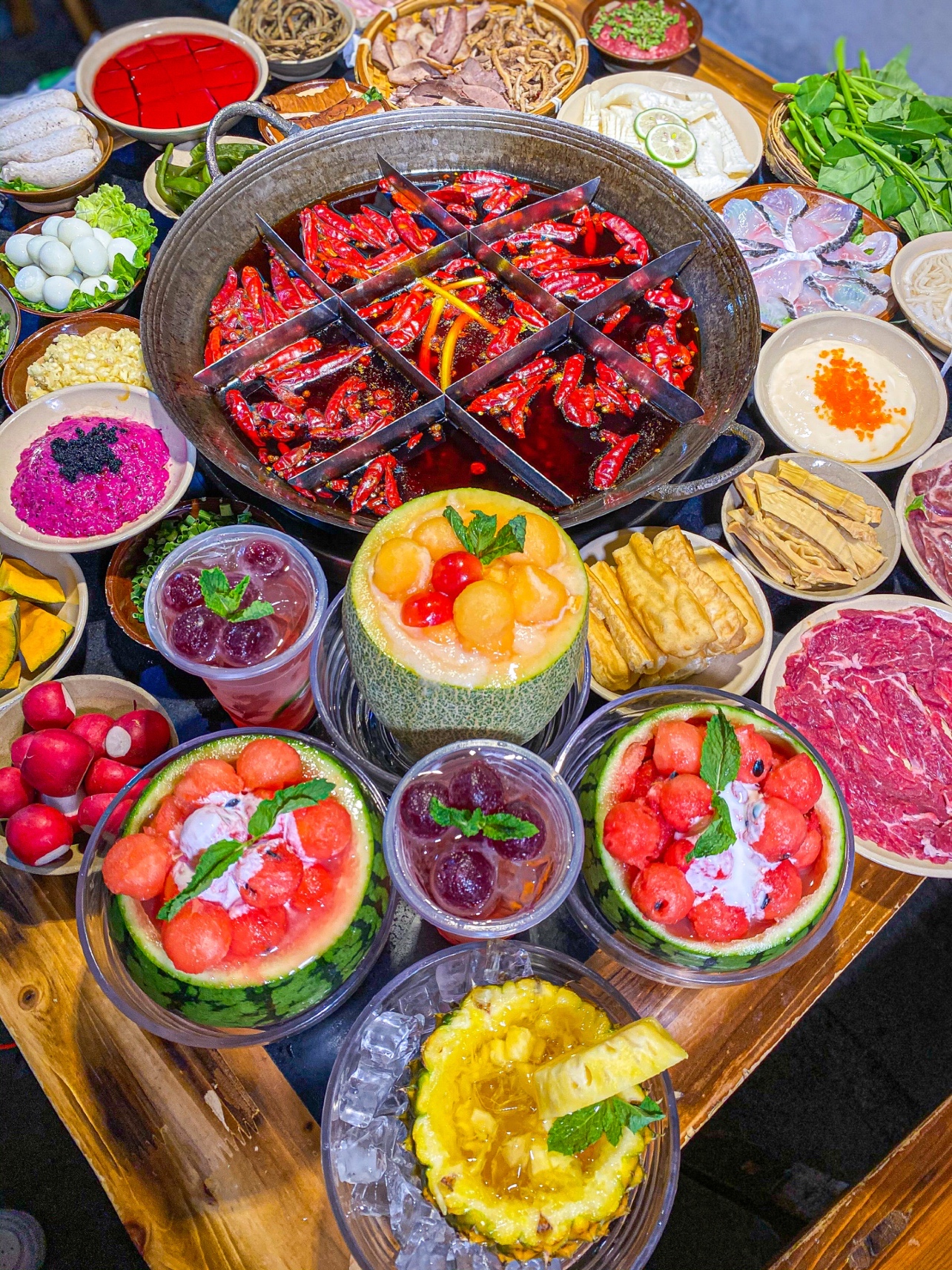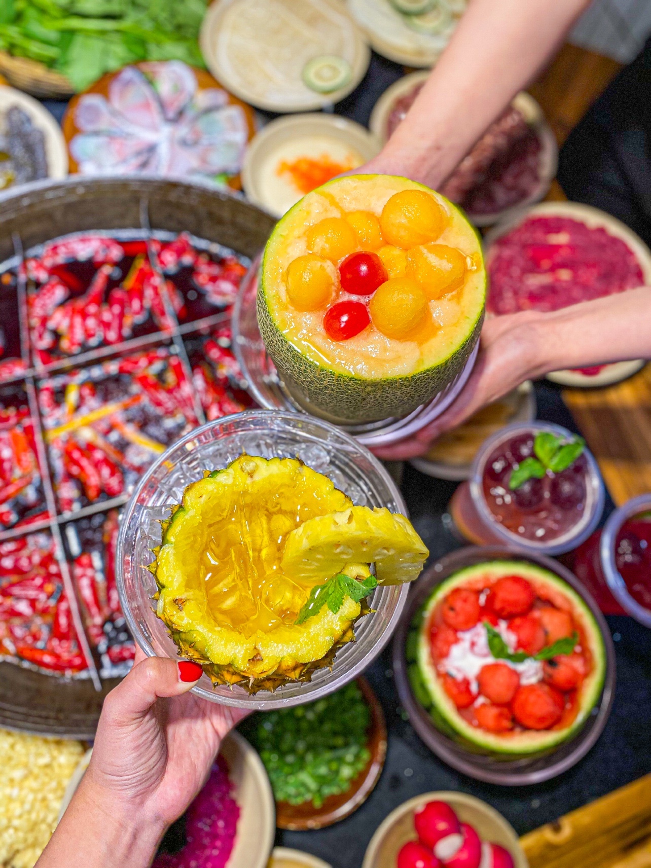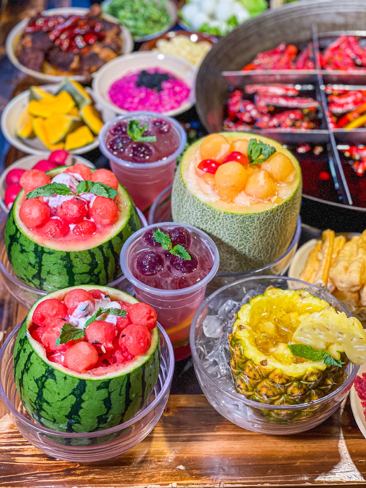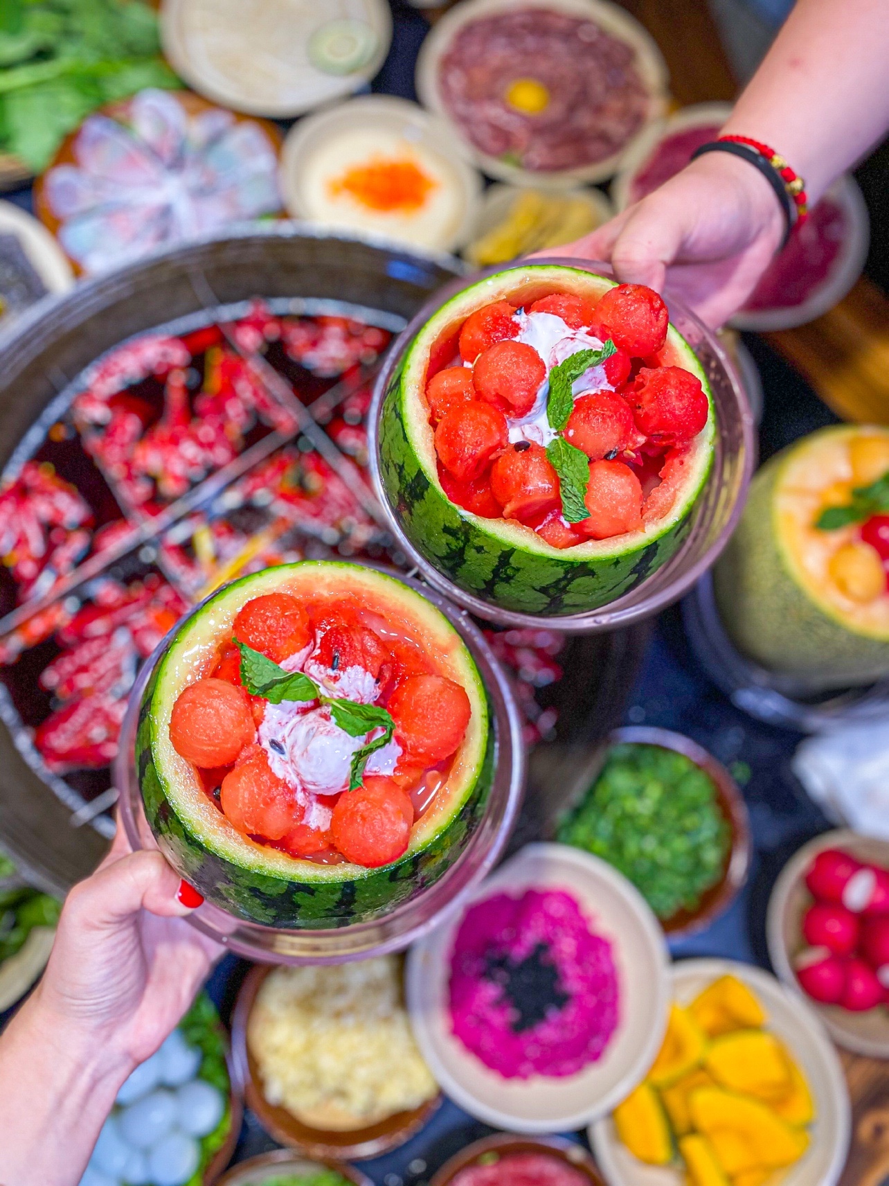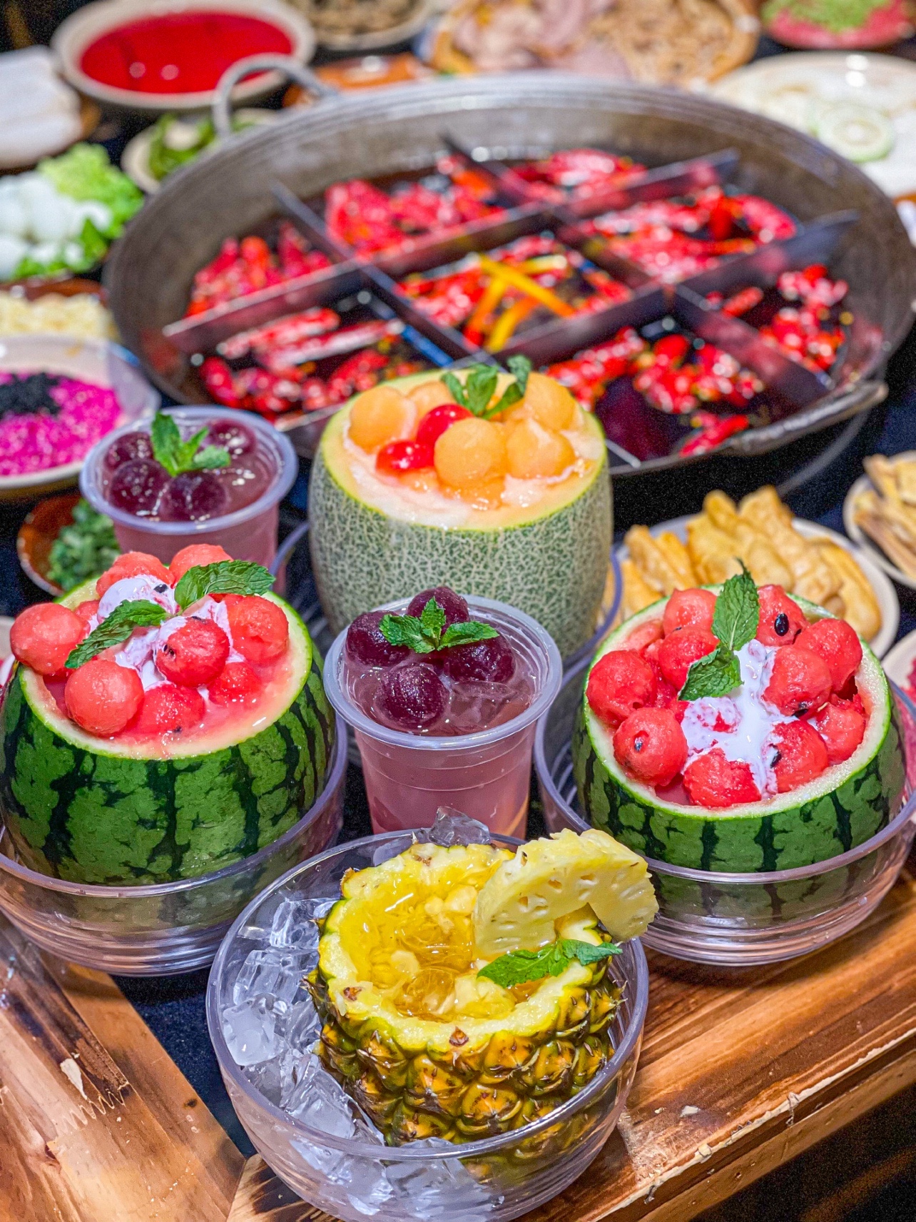 💃火锅店里吃冰太快乐啦!西瓜冰🍉、菠萝冰🍍、哈密瓜冰🍈,清爽葡萄冰气泡水🍇,一口火锅一口冰,解暑解辣还能吃火锅,简直太爽了!