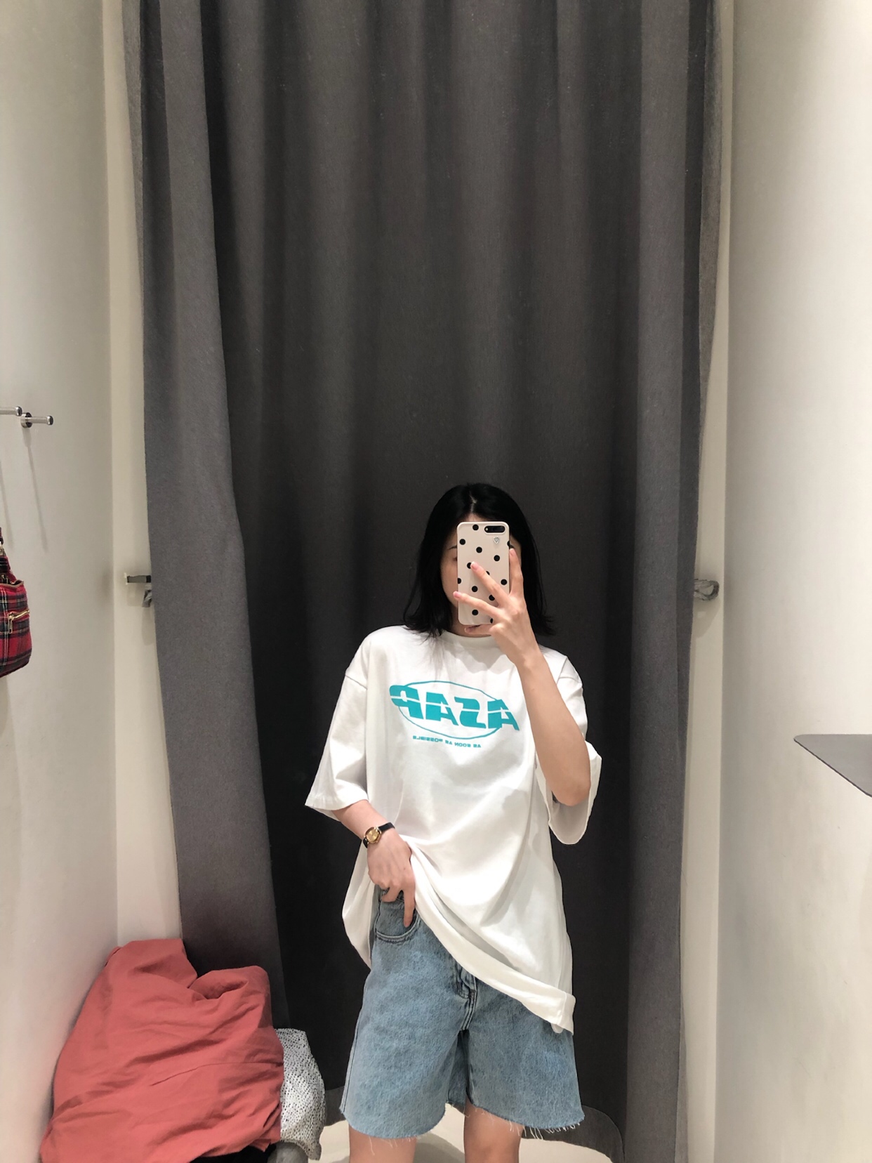 OOTD|UR试衣间好清新的字母T牛仔中裤版型还可以哦比较修-美图社区-美图秀秀