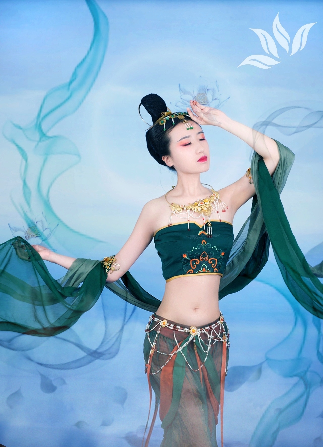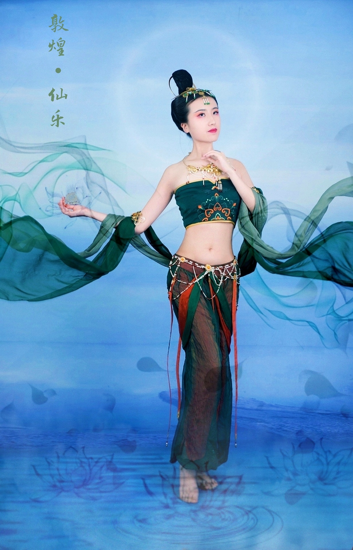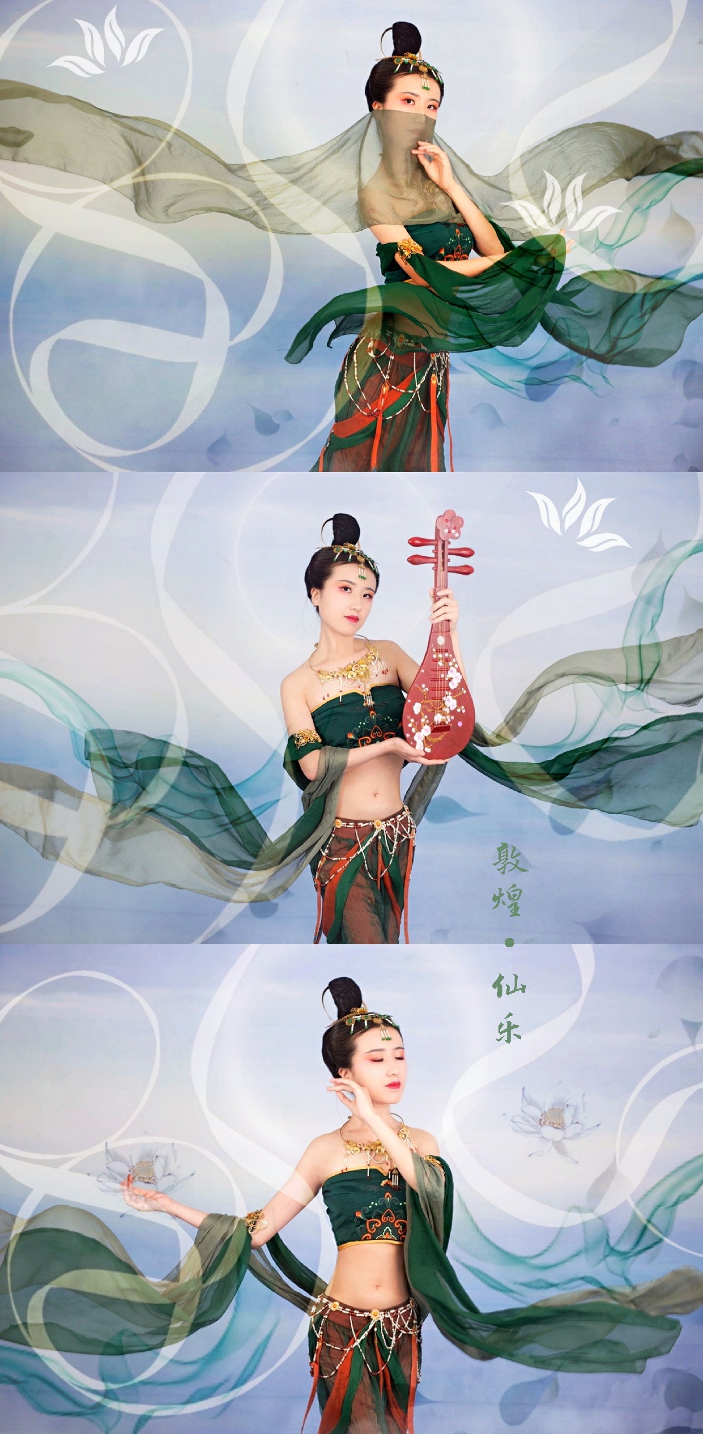 文案:她来自敦煌莫高窟的古老壁画 神秘悠远 她的故事流传千古 长城古塞 荒松落日 那是人烟稀少的边塞大漠 玉门关外 故乡飞雁 令多少游子魂牵梦萦 落霞与孤鹜齐飞 水上踏莲 仙乐缥缈 舞姿绝尘 留下美丽飞天传说