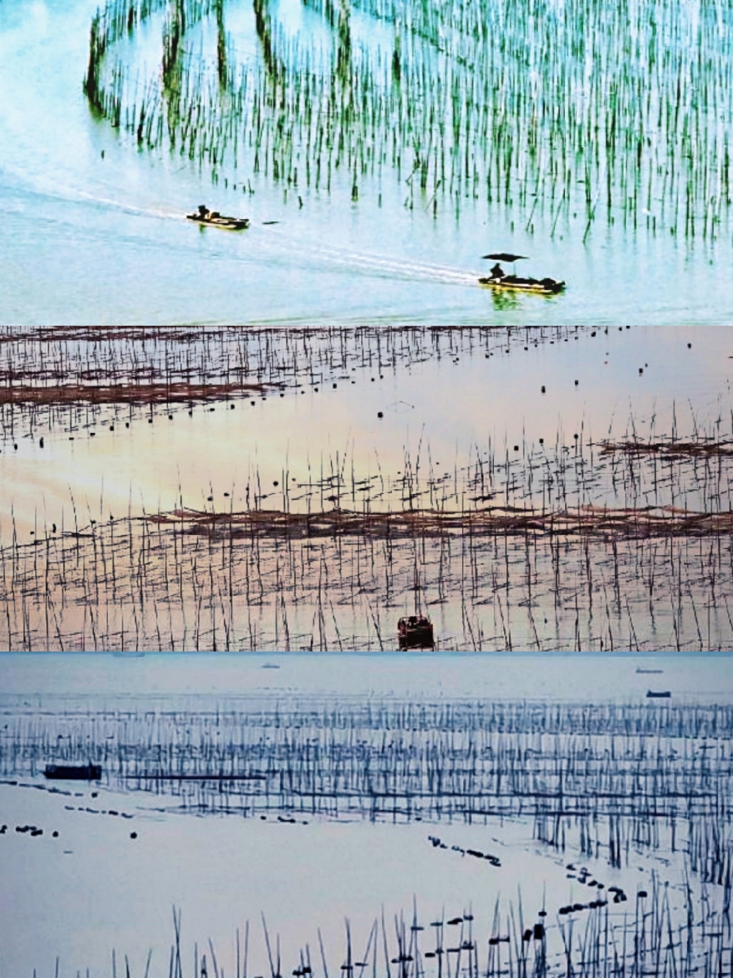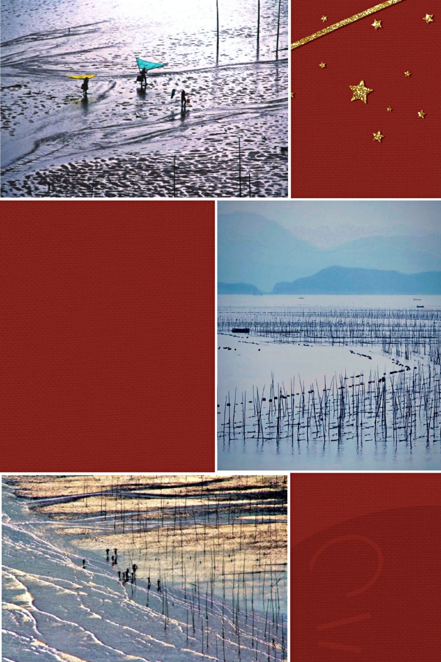 福建霞浦东部小皓村的海滩是沙质滩涂,渔排在海里围绕呈环形、紫菜竿排列整齐一致。傍晚潮水退去,霞光滿滿铺开,海滩的色彩会产生的奇异变化,有令人意想不到的景象。这里不需要门票,只要老天爷开眼,只要有光线,美景就常在。