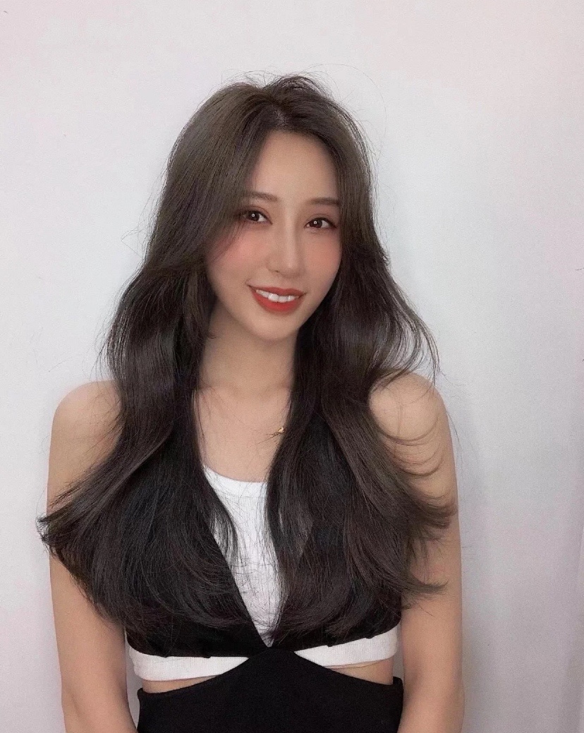 很有光泽感的黑茶发色,相对自然黑来说,这款黑茶发色的长发更有高级感