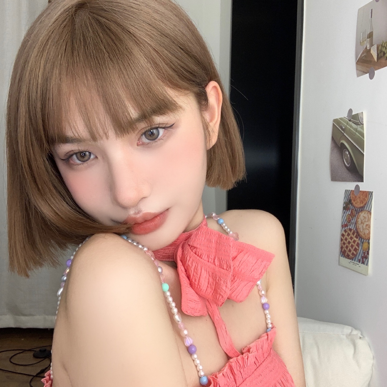 发色:奶茶色漂了两次夏日短发分享|显白发色
