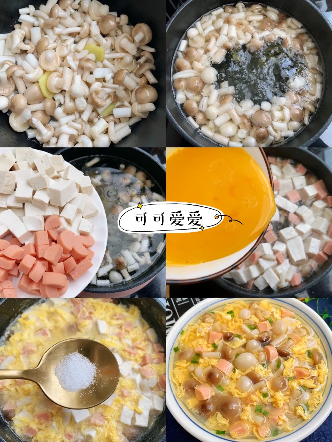 今天来一道低脂不胖的豆腐火腿鸡蛋菌菇汤,适合厨房小白又怕胖的小仙女,喜欢的可以试试呀~