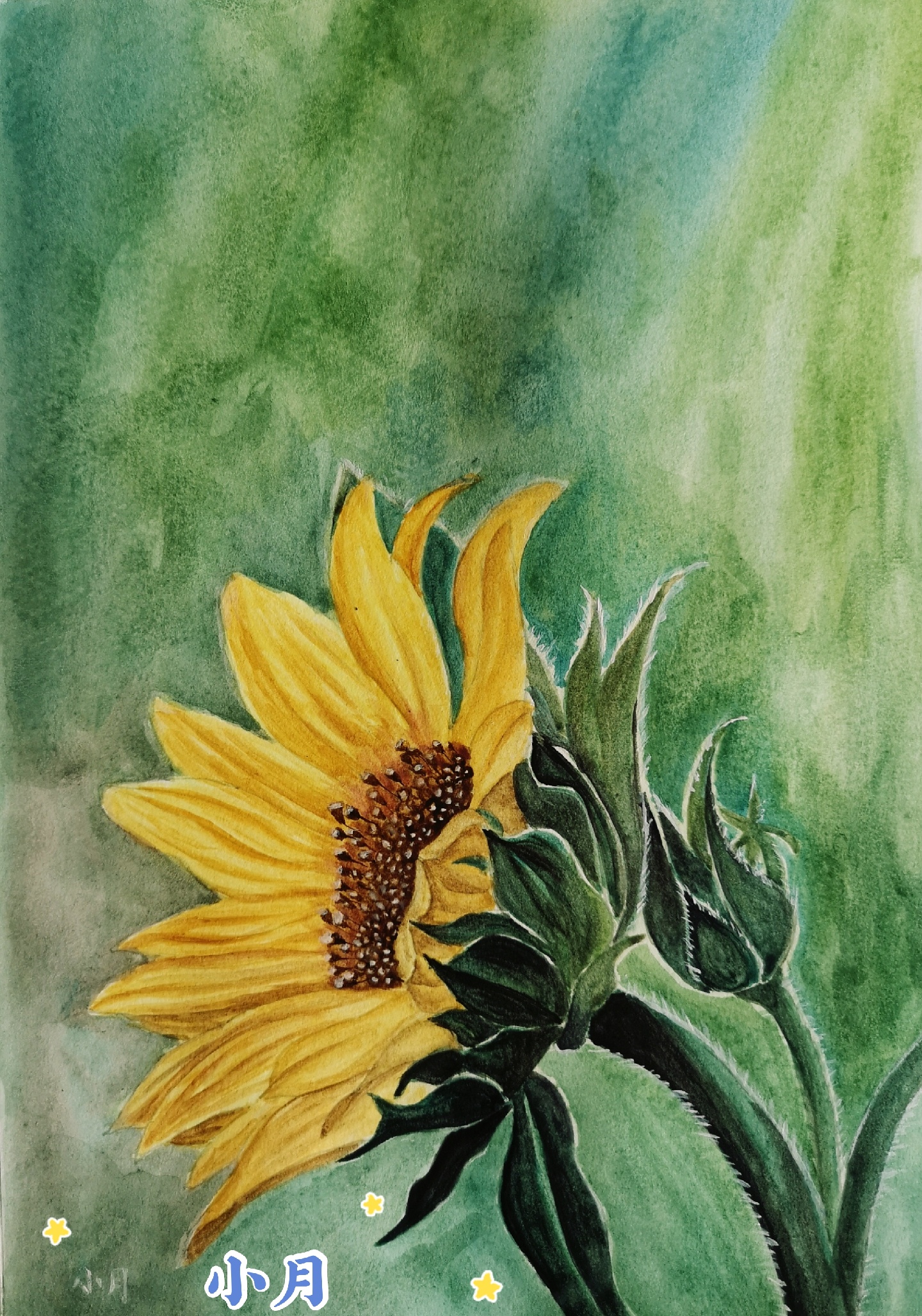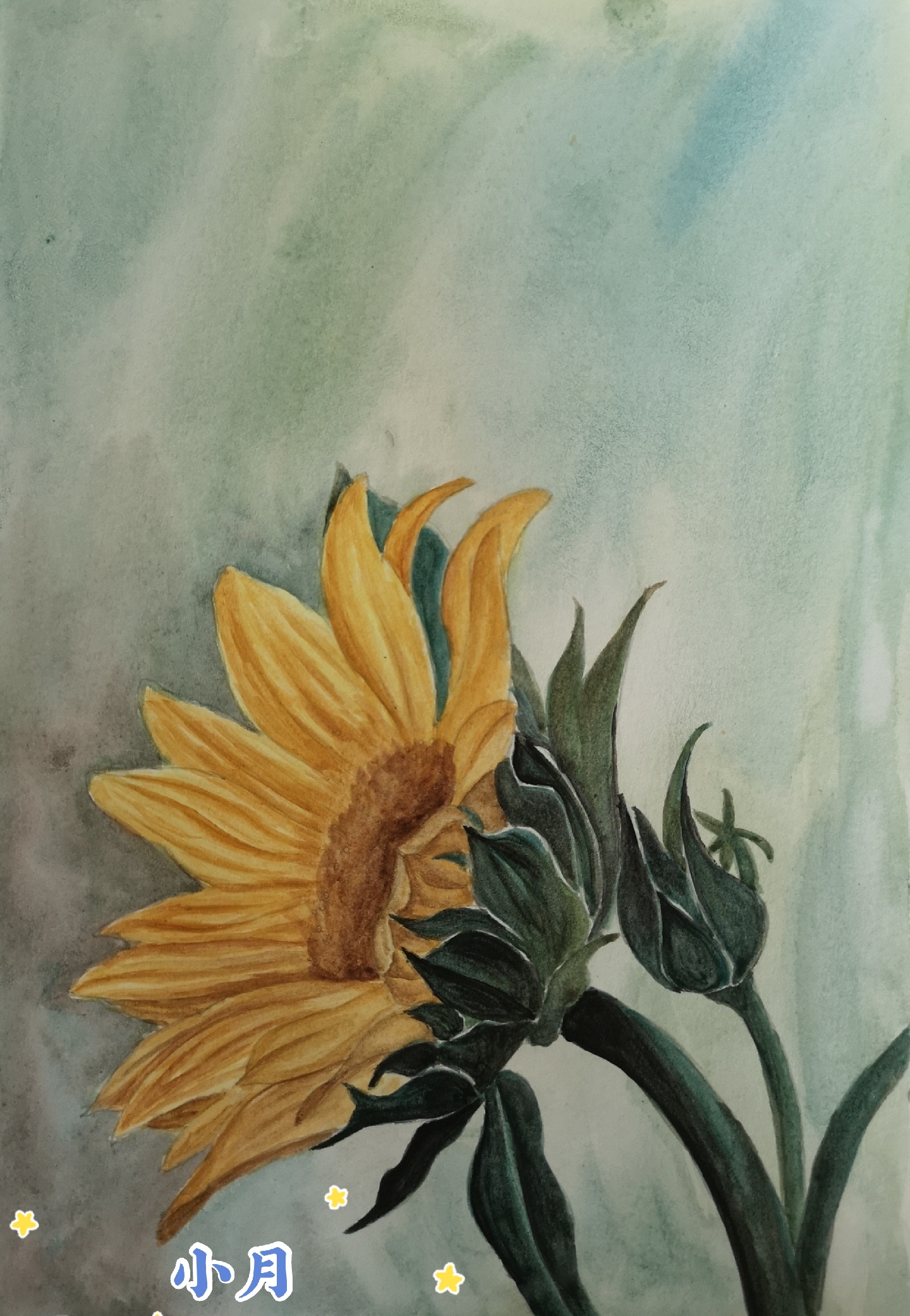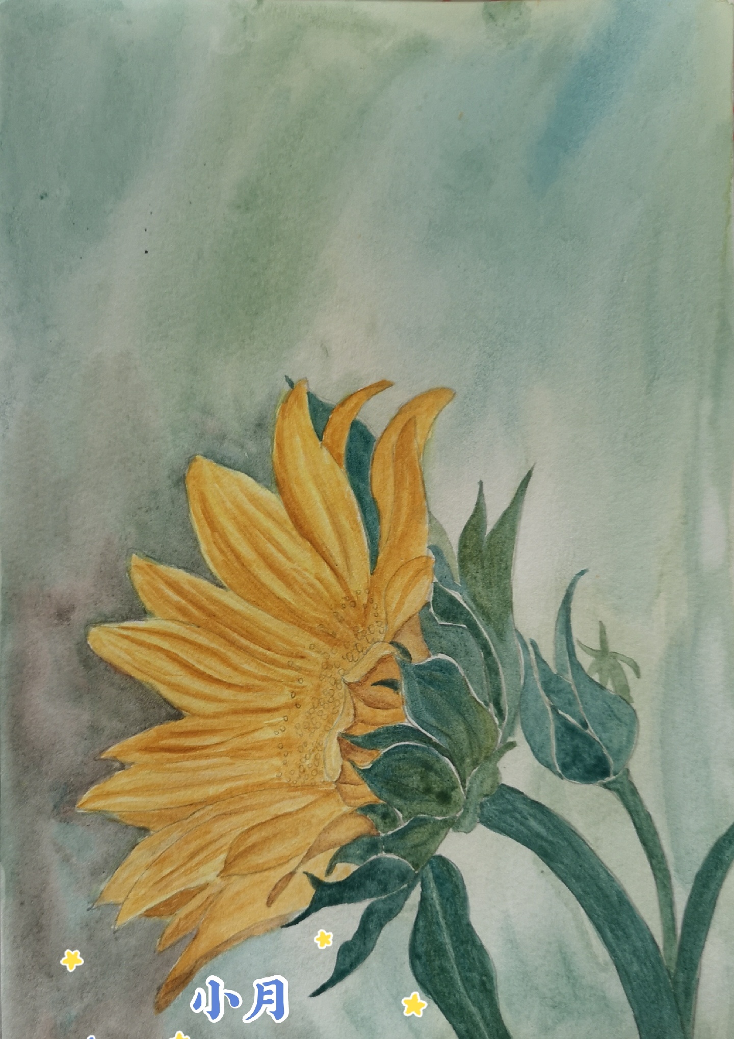 水彩向日葵(附过程图),线稿忘记拍了😂,颜料:花辨(黄色、-美图社区-美图秀秀