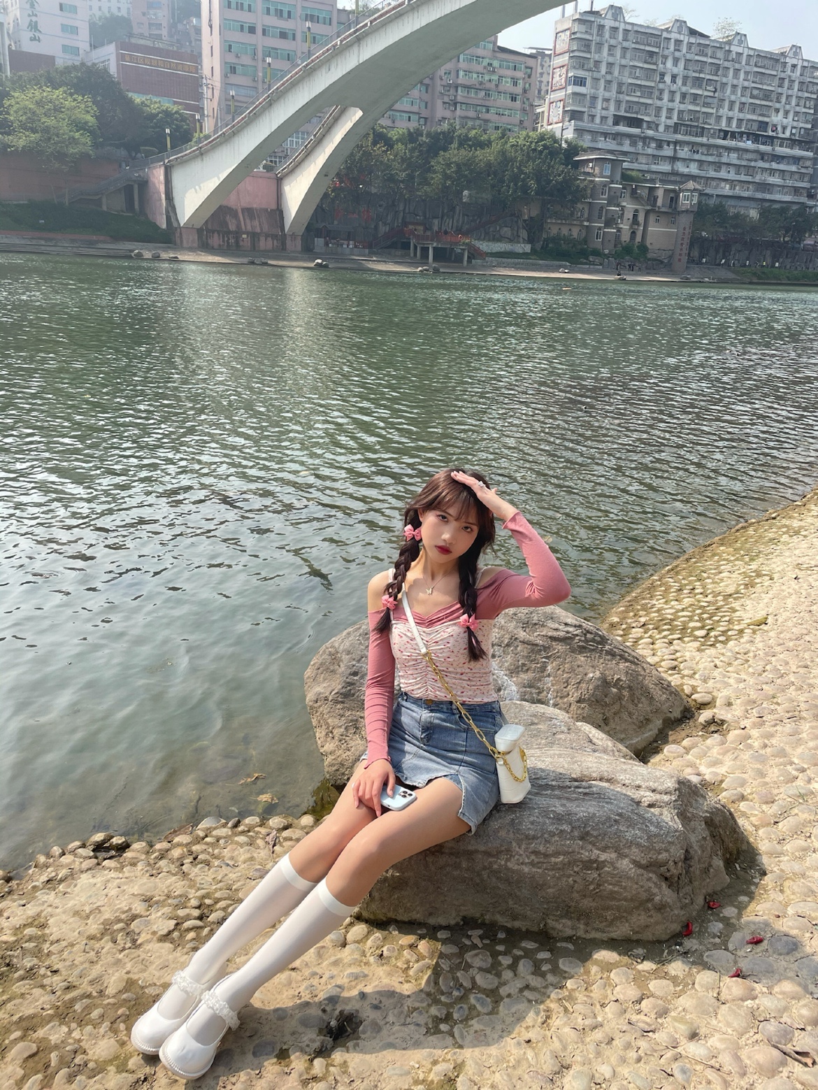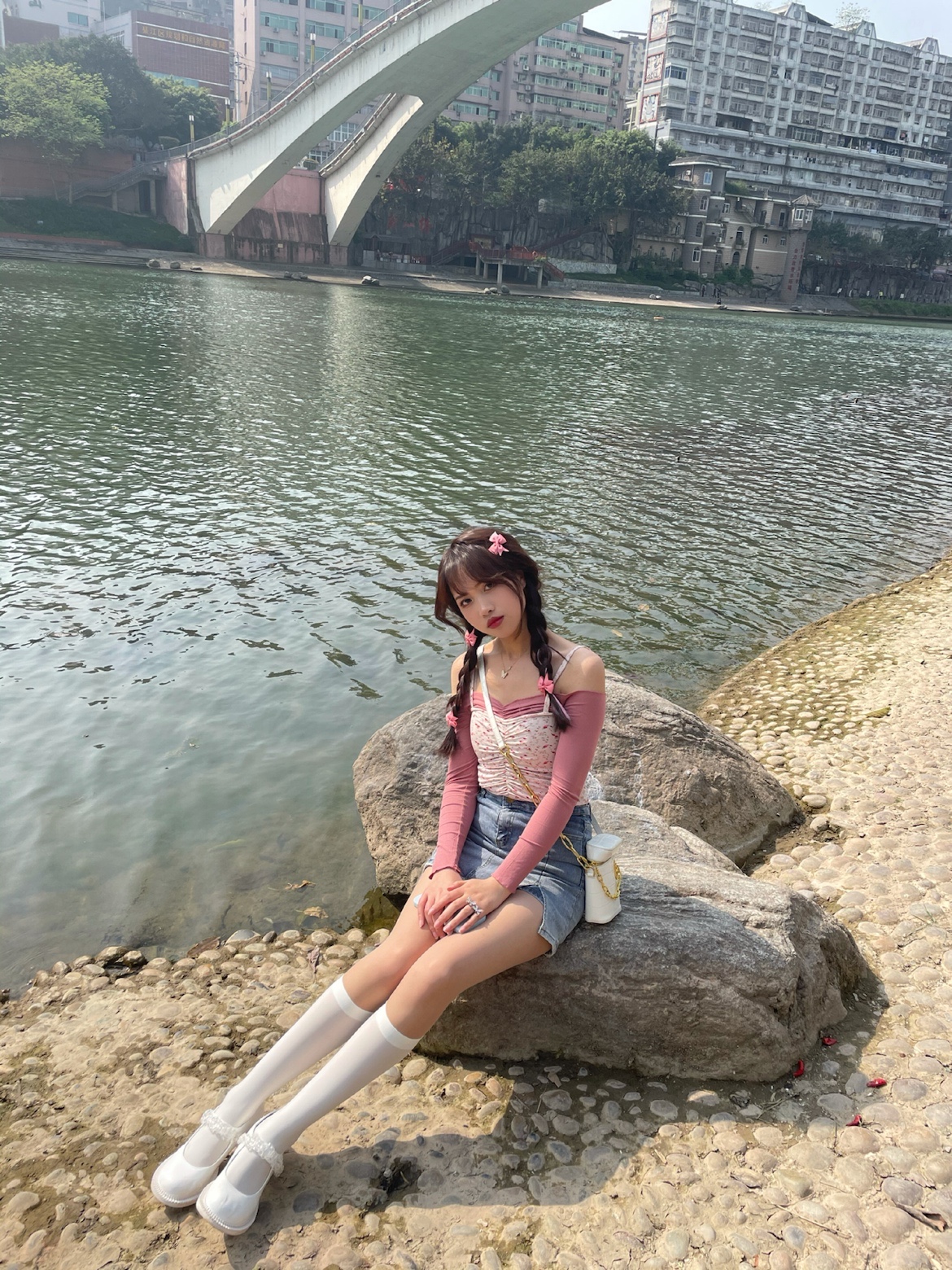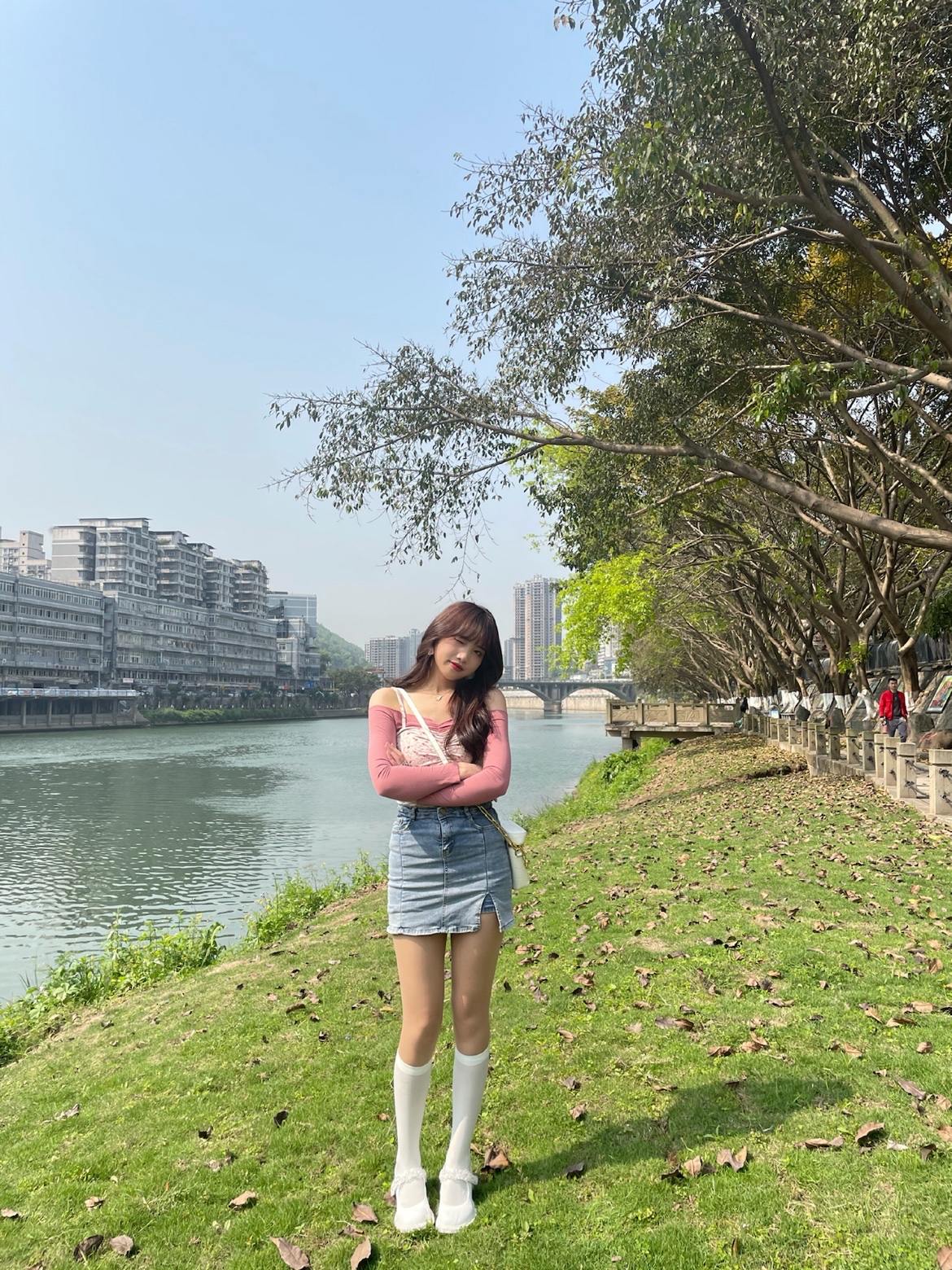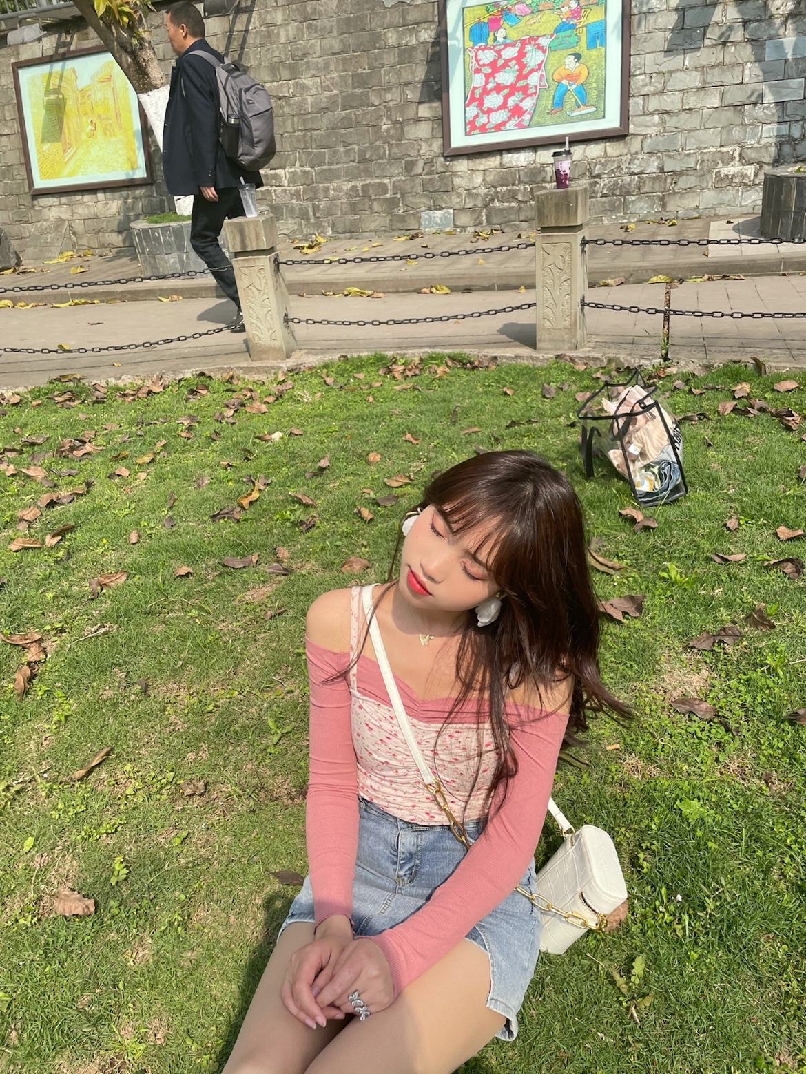 粉色碎花小吊带➕一字肩紧身t,在搭配上一条紧身牛仔半裙,辣妹的感觉来啦~