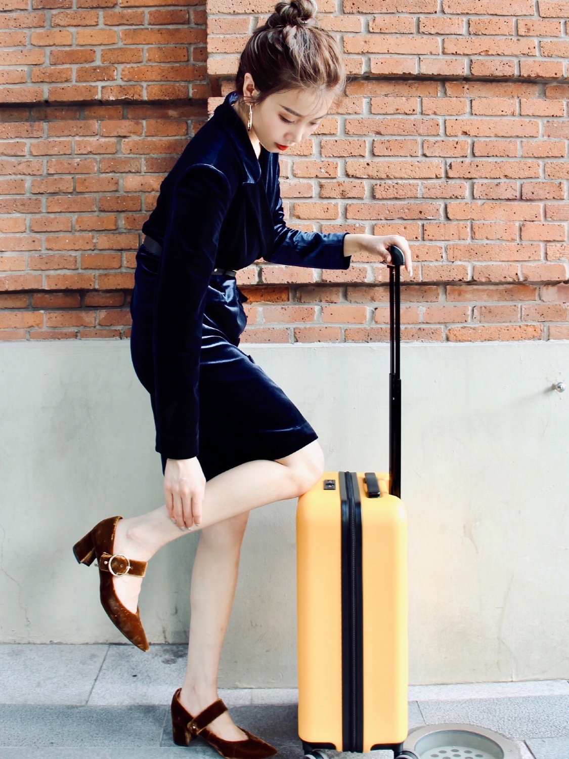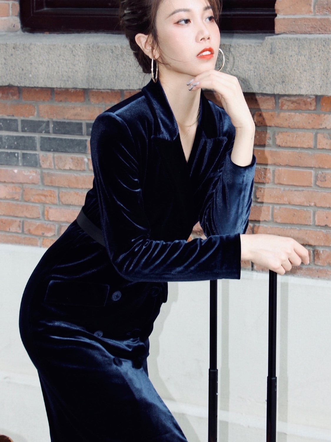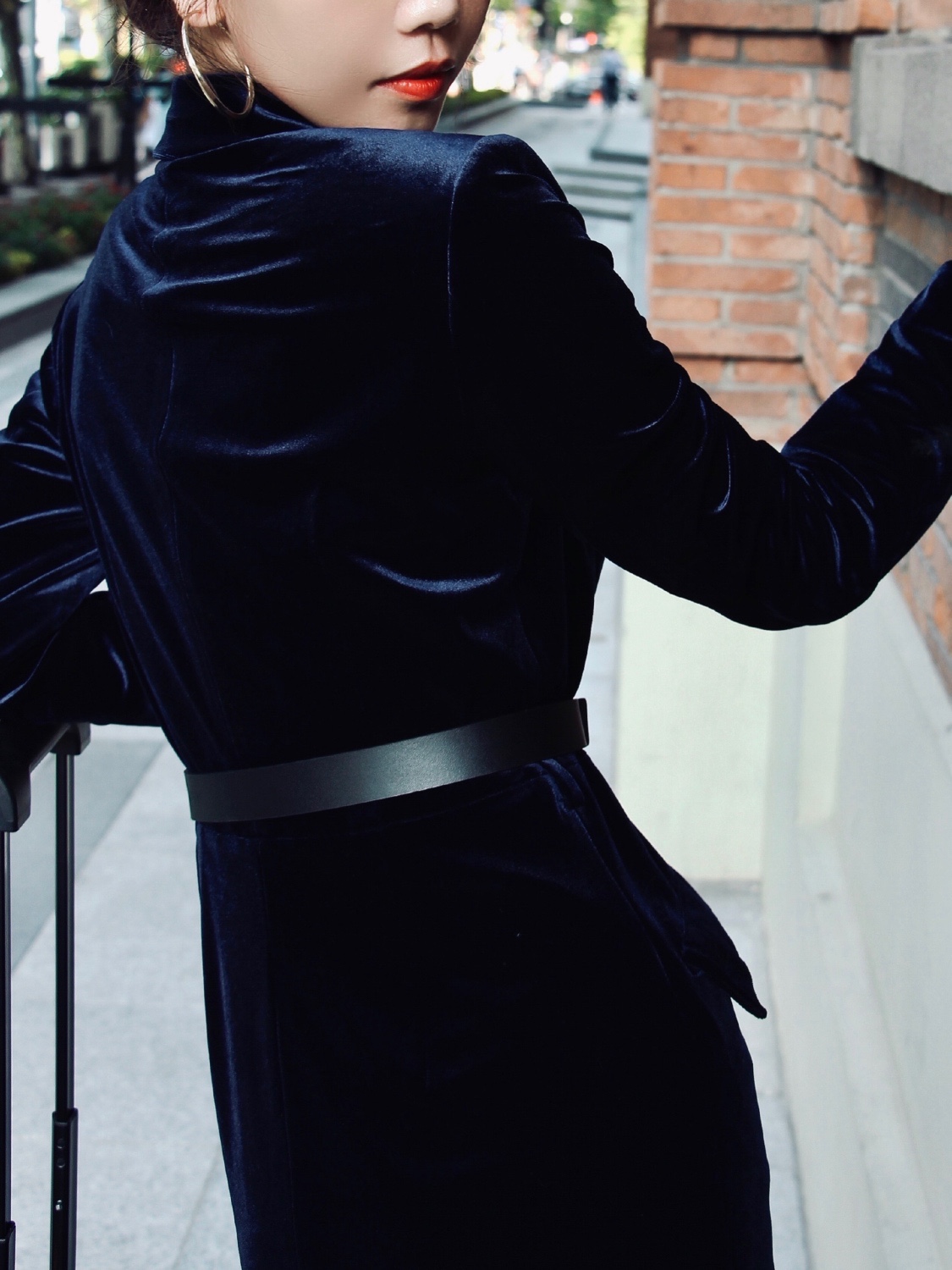 套装 | MARYLING玛俪琳 深蓝双排扣直筒丝绒连衣裙A1BFW65500