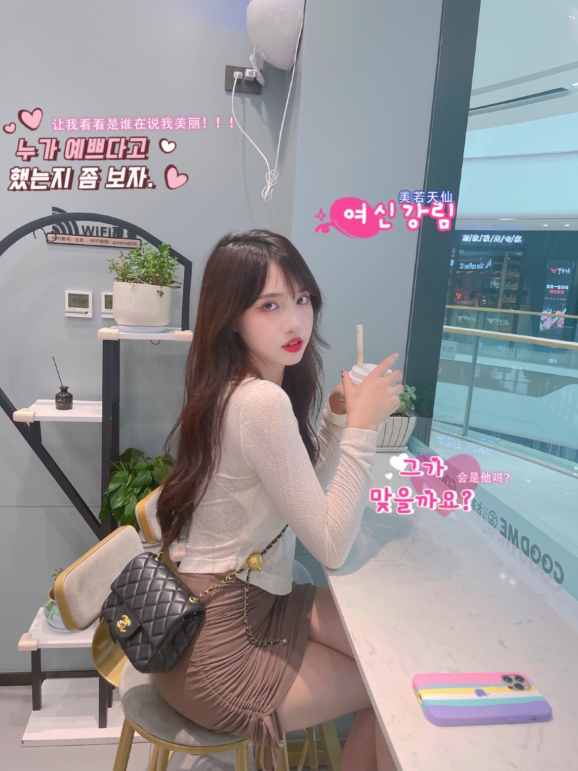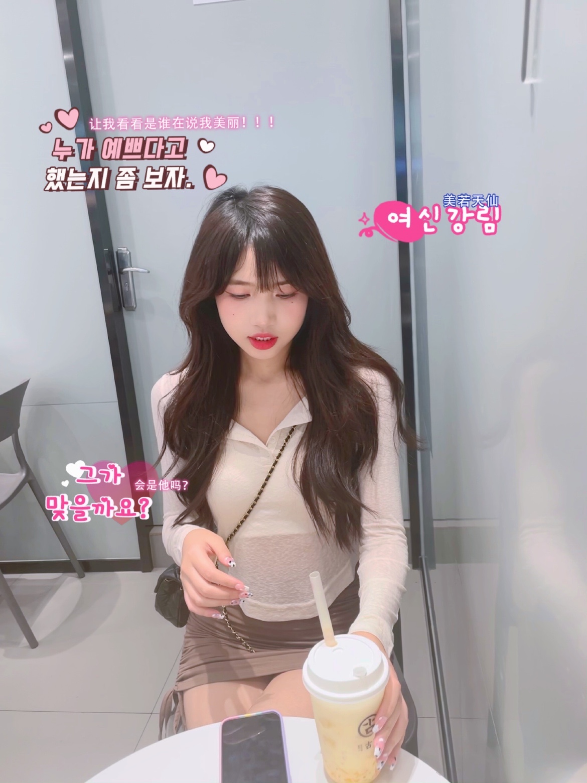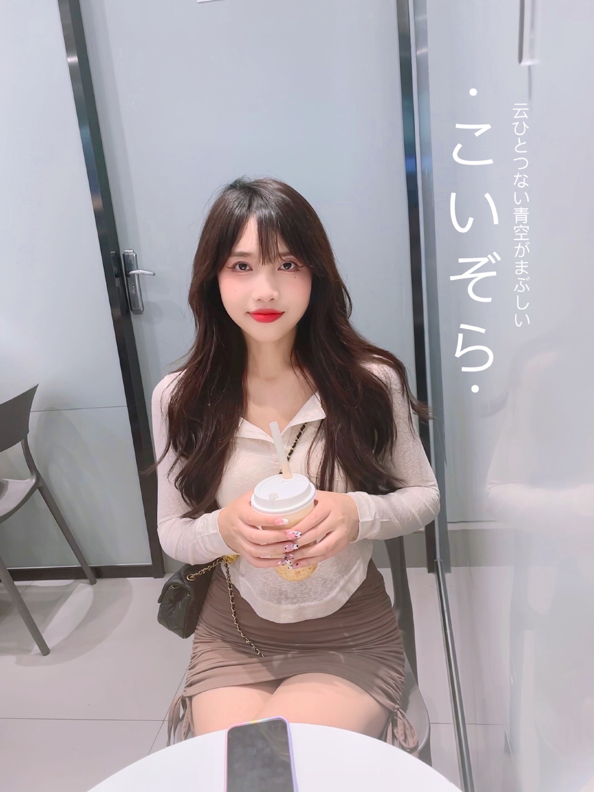 在奶茶店怎么拍照好看呢,可以拿奶茶当道具哦~假装去拿奶茶,让-美图社区-美图秀秀