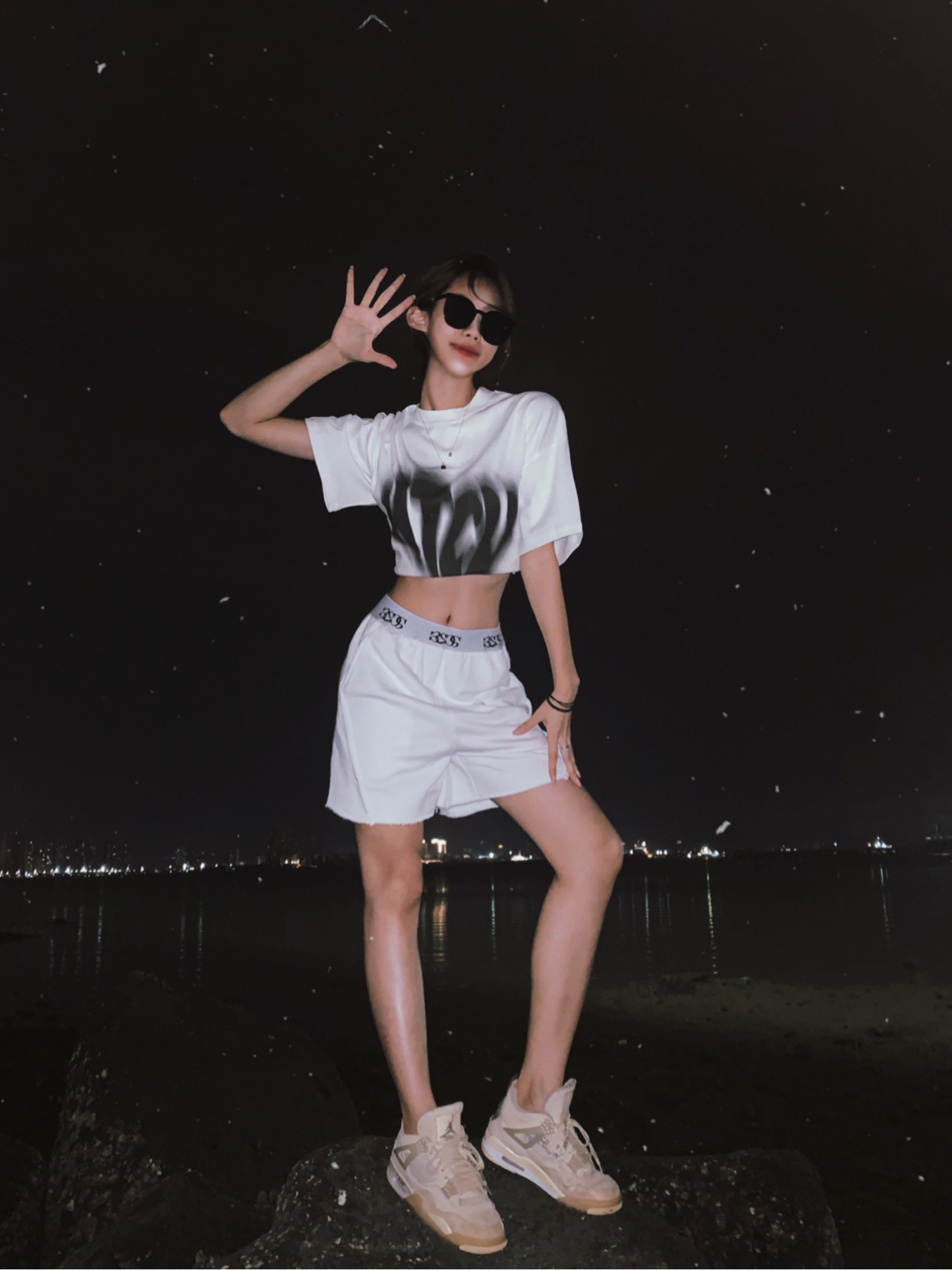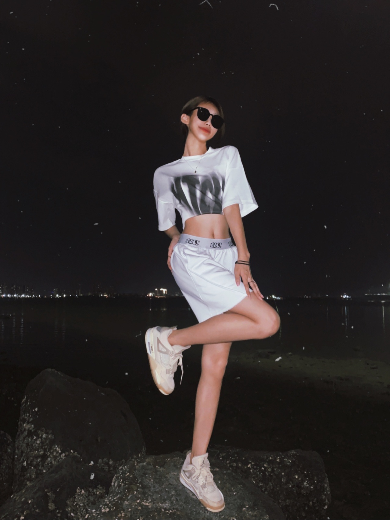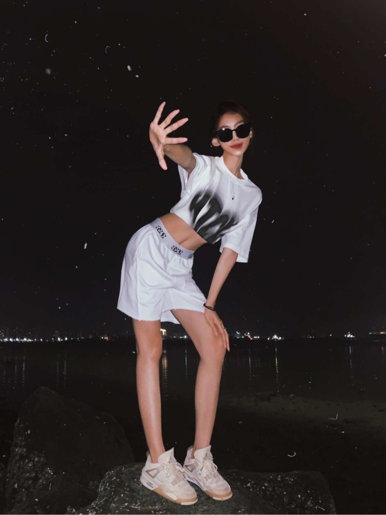 晚上在海边拍照真的好看📸️礁石上凹姿势超简单诶穿浅色衣服拍-美图社区-美图秀秀