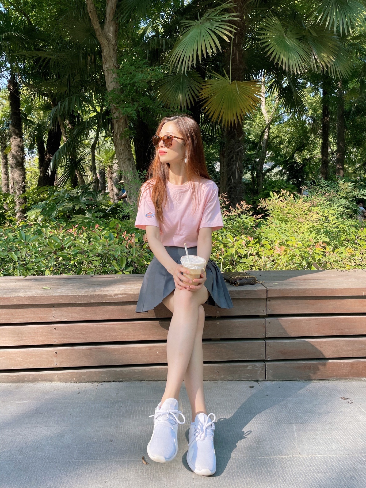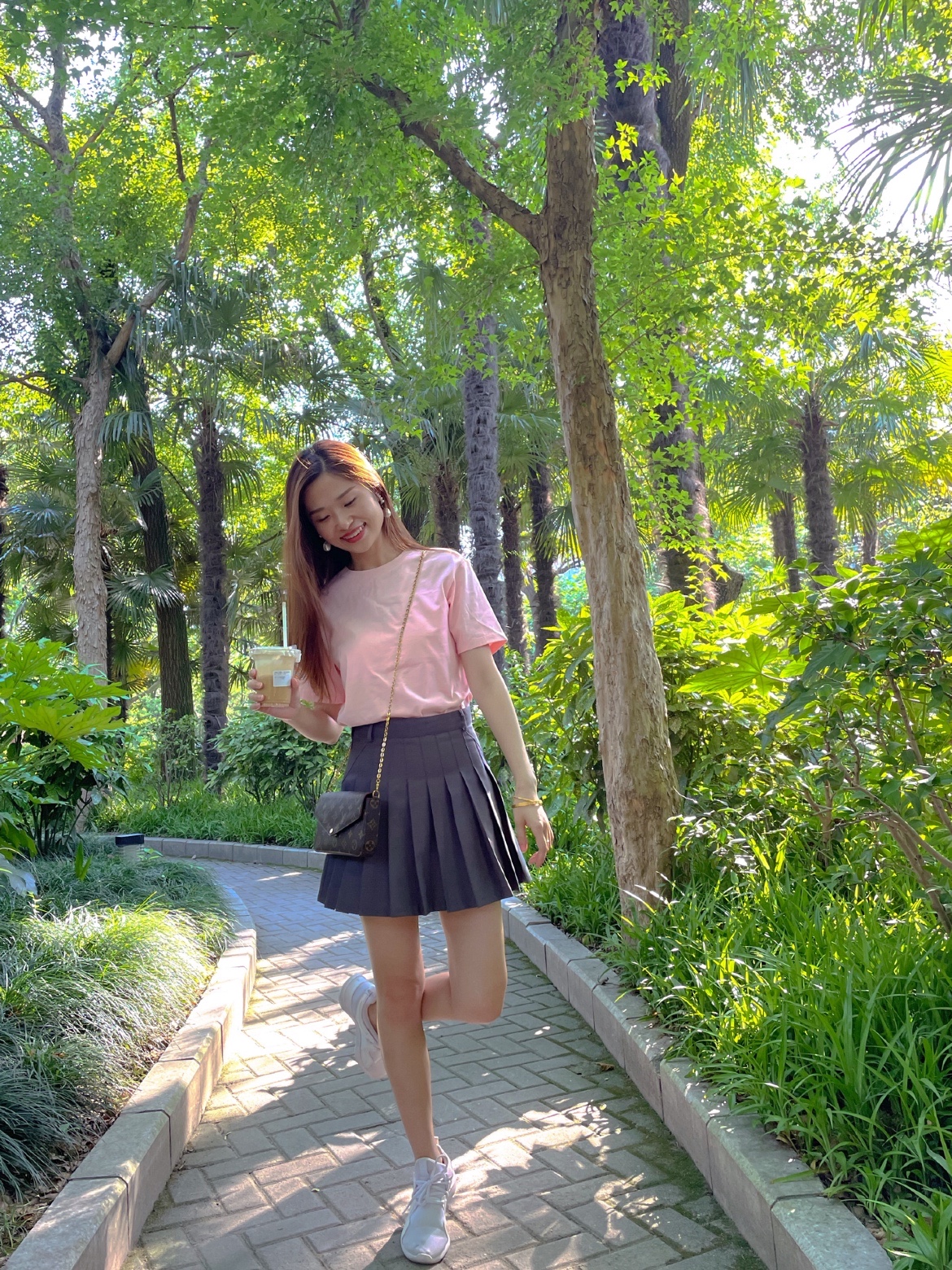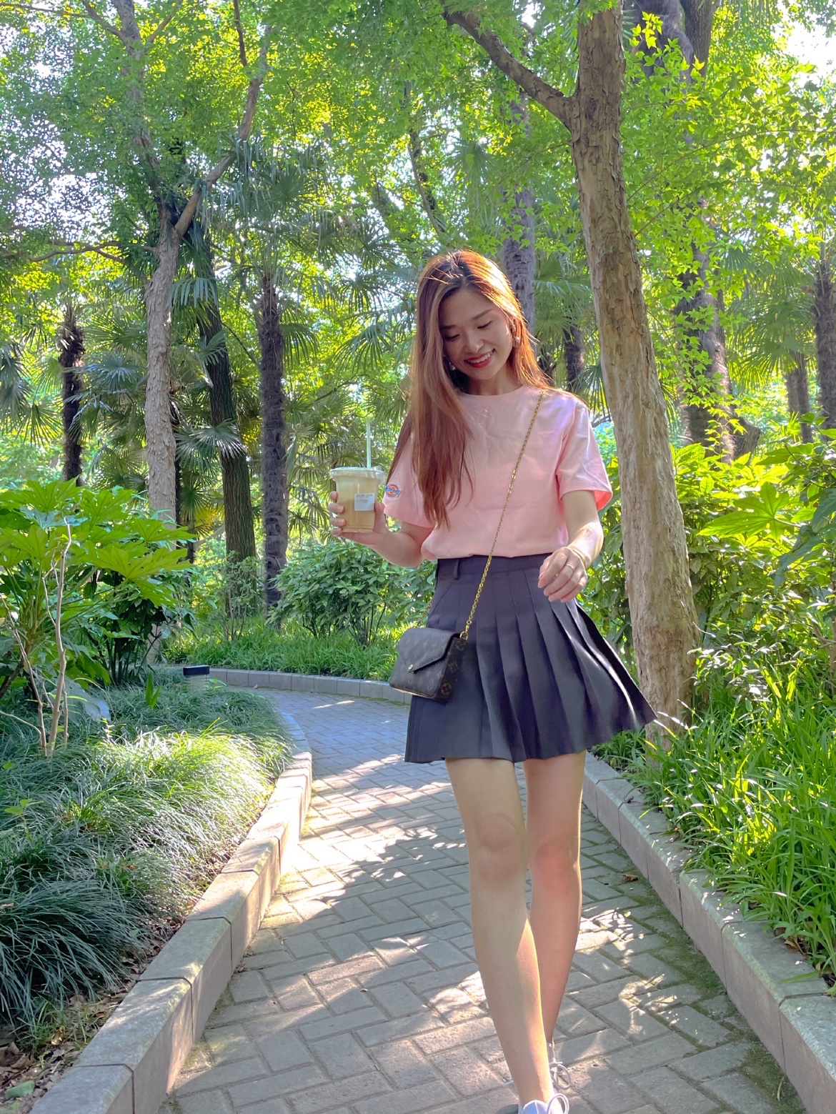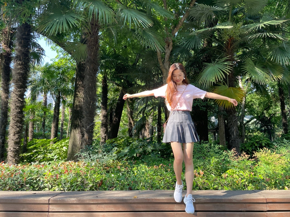 OOTD:浅浅的粉色配灰色百褶裙,减龄穿搭,青春洋溢。