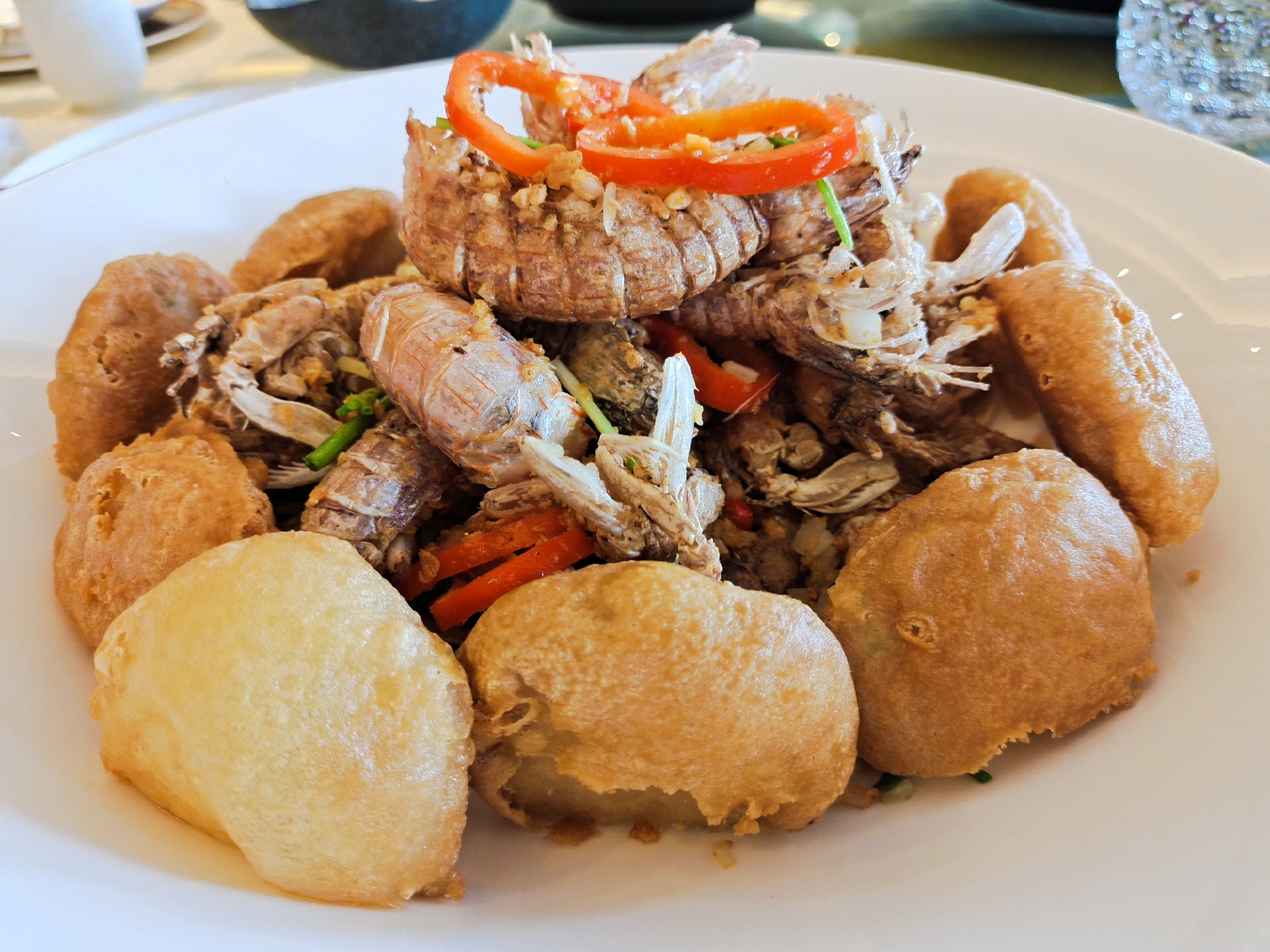 椒盐干香皮皮虾,肥厚,配上麻饼香香的。