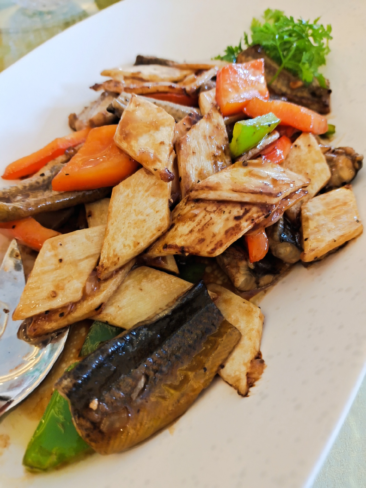 黑椒茭白炒鳝背,黑白配味道不错哦。