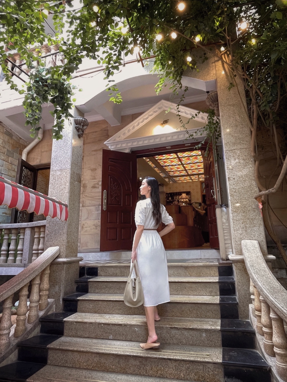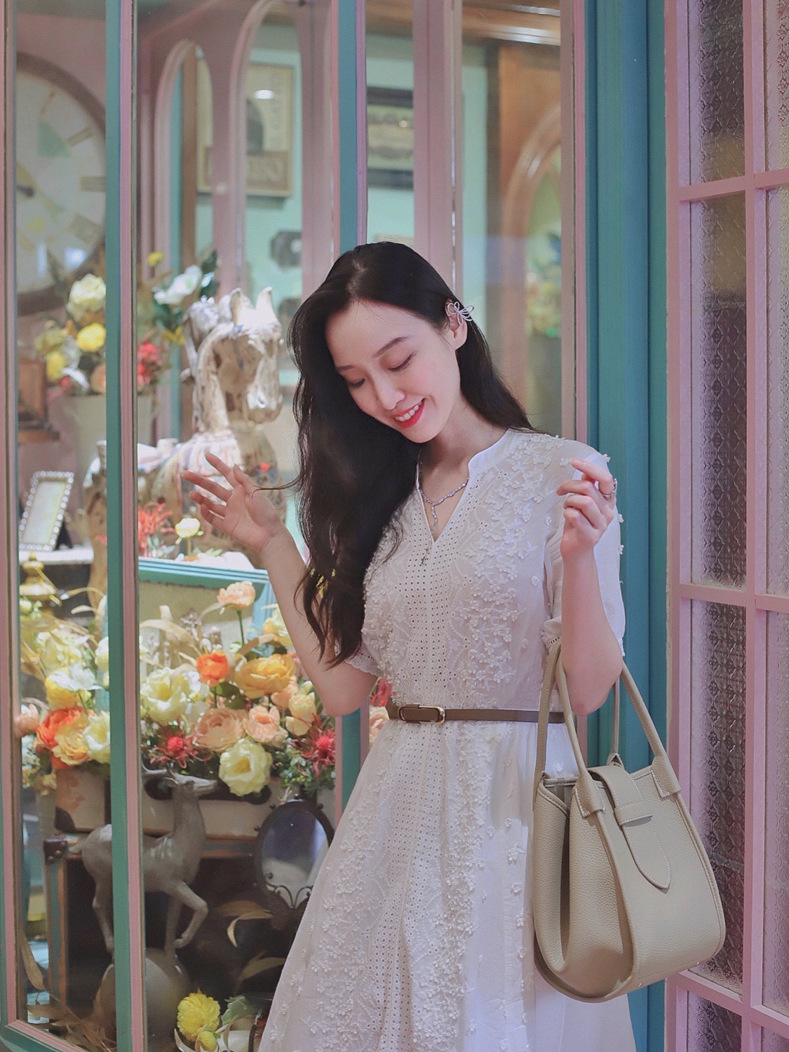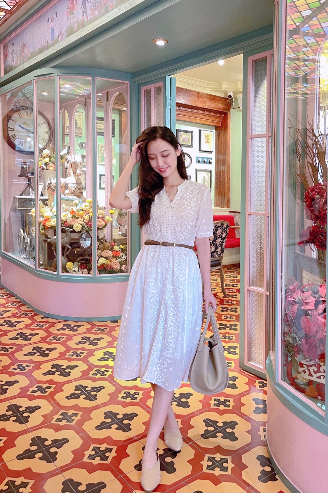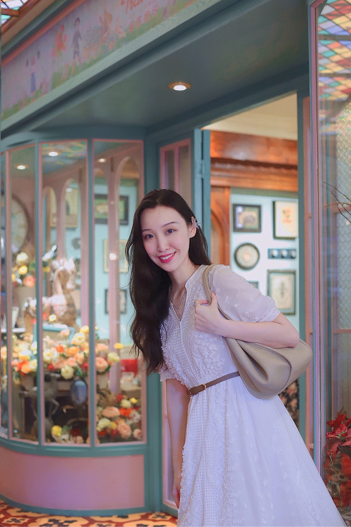 秘密旅行作为网红店的鼻祖,最近重新装修了,跟姐妹来打卡了中山三的分店🌟这家分店走的是森系花房的小清新路线,爱丽丝梦游仙境的即视感💐💐刚好跟我身上这组穿搭配一脸,来了拍一组美美的照片再走吧🌈