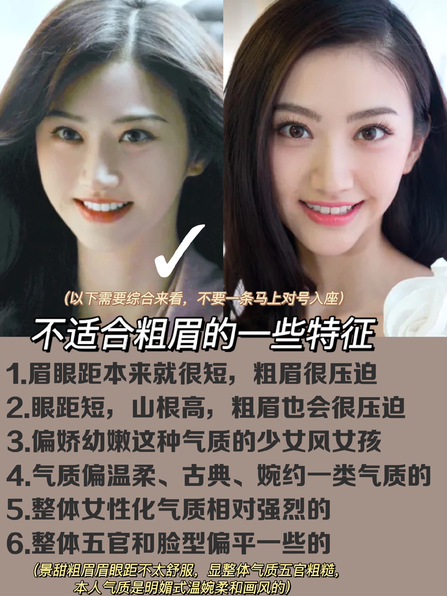 🔹但也可以反向论证,不适合偏粗眉毛的人,