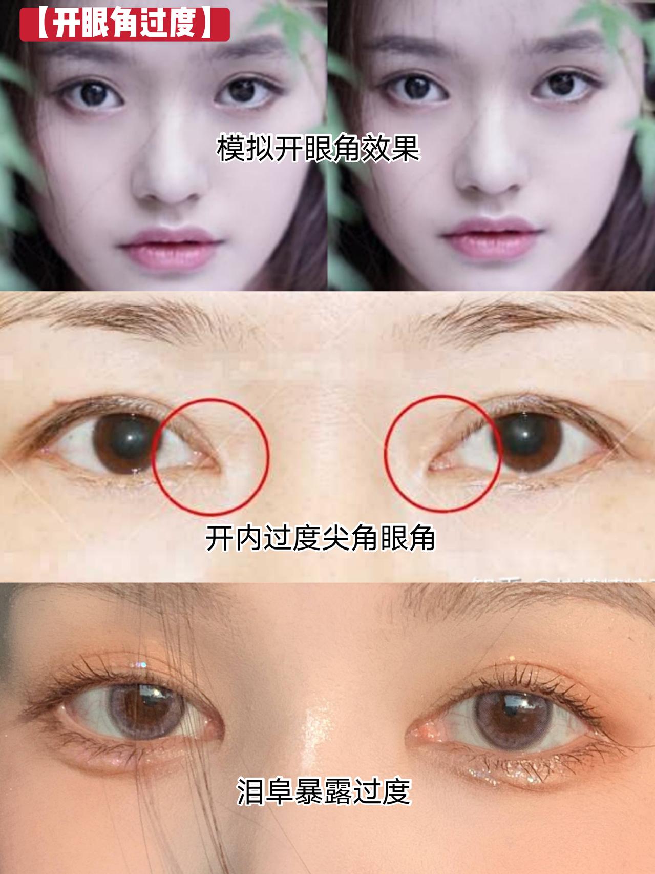 但很多失败的双眼皮,就是因为开眼角过度,开出了尖尖的眼头不说,泪阜暴露过度,还容易出现迎风流泪等等情况