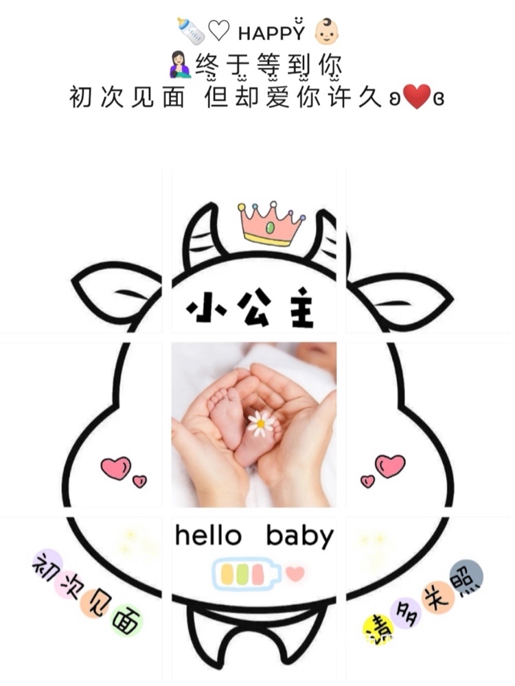 朋友圈宝宝出生报喜文案 | 出生报喜走心文案 | 出生九宫格图片 | 牛宝宝出生报喜