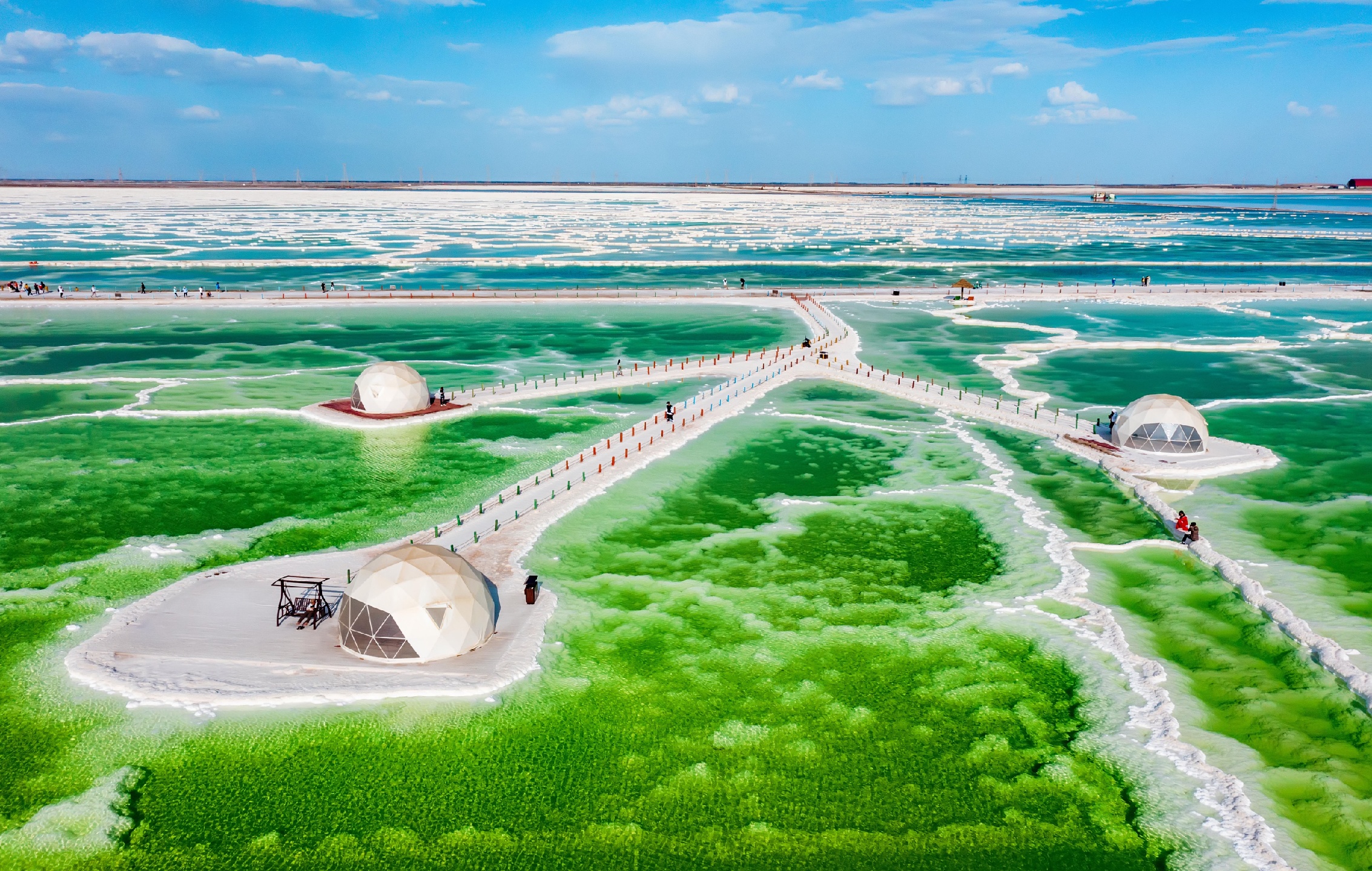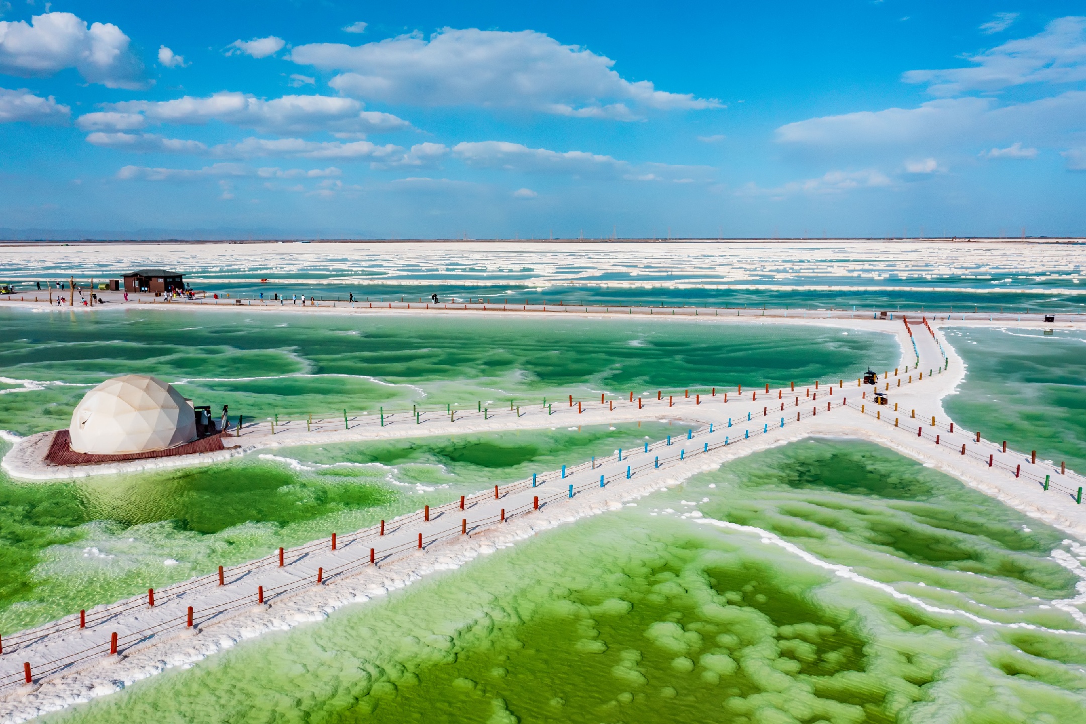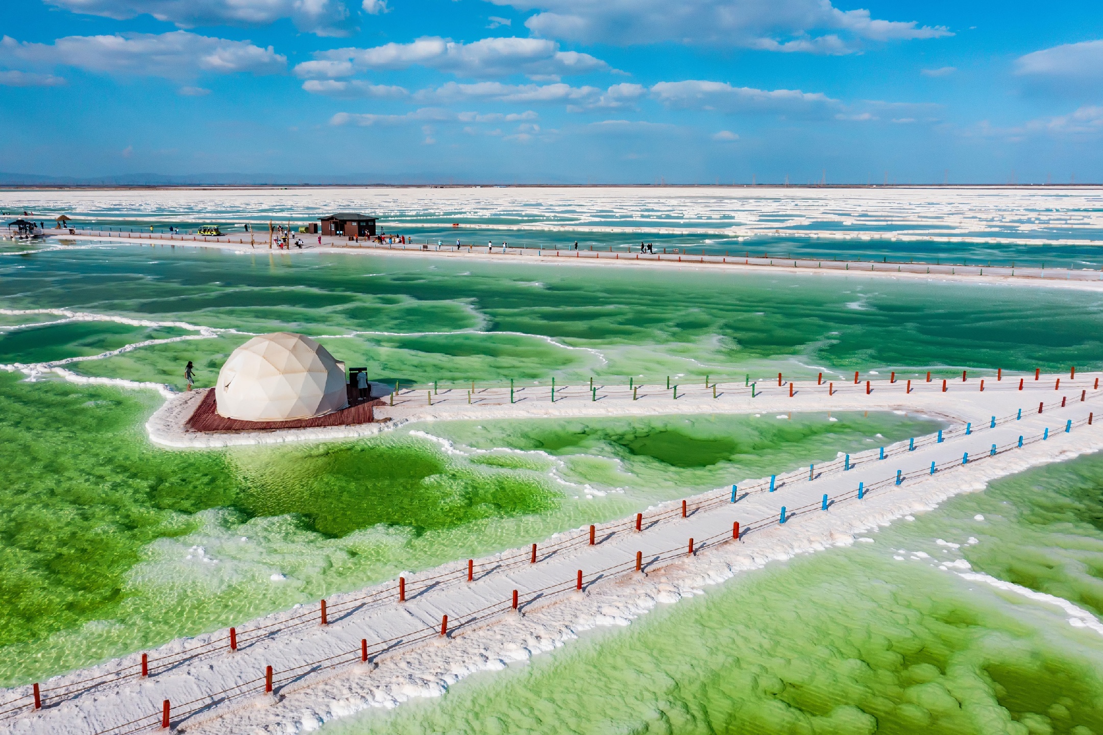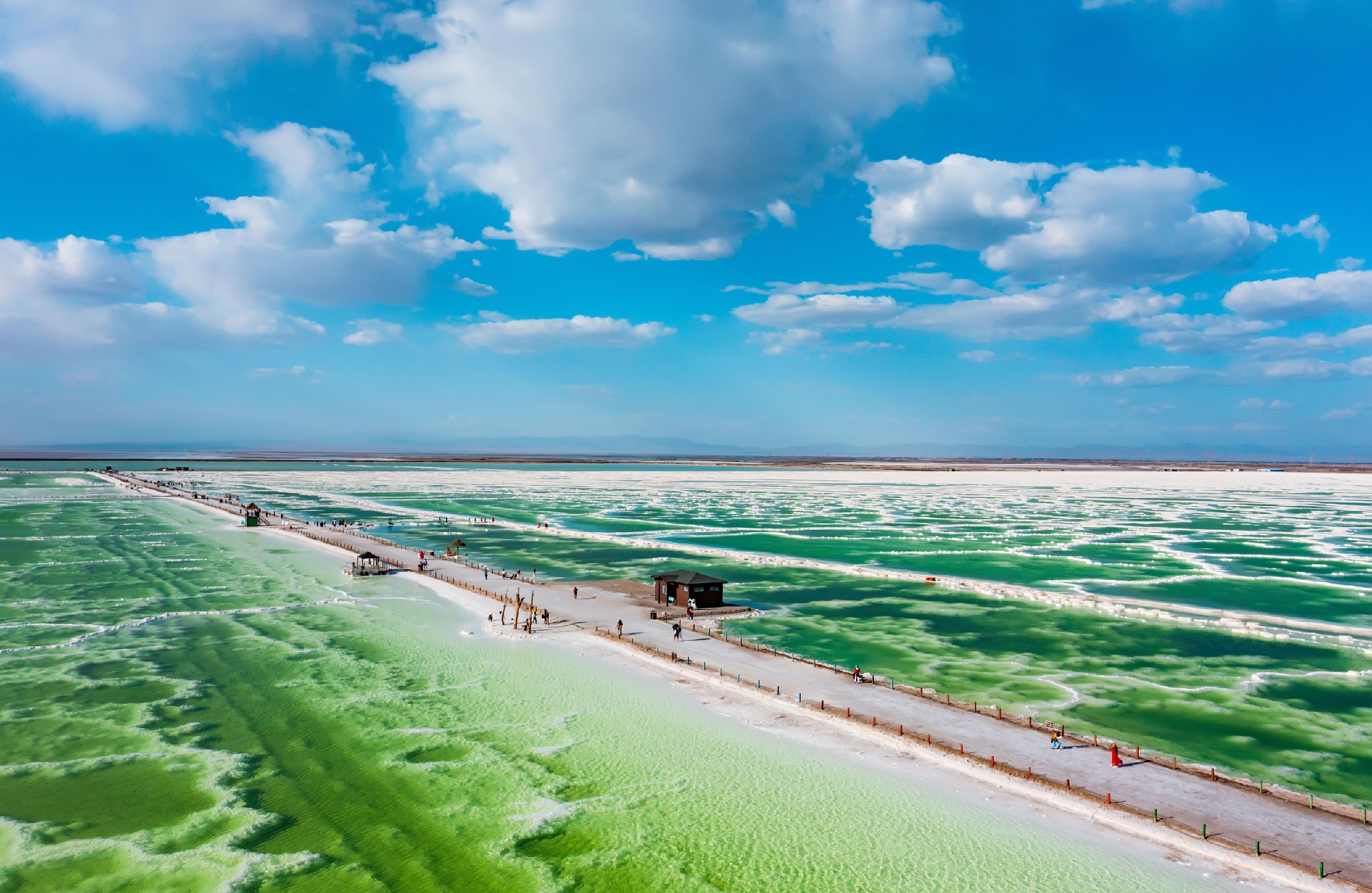 蓝天白云下的青海格尔木察尔汗盐湖,中国最大的盐湖景区,美得惊艳,足以秒茶卡盐湖…