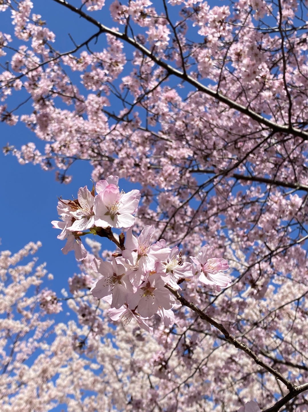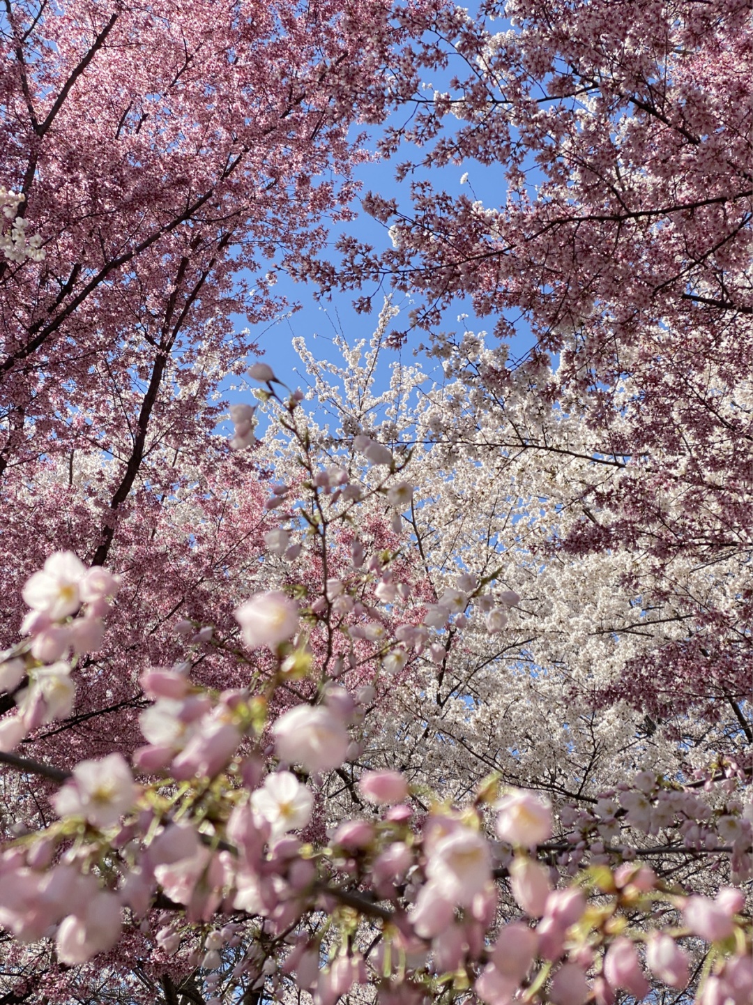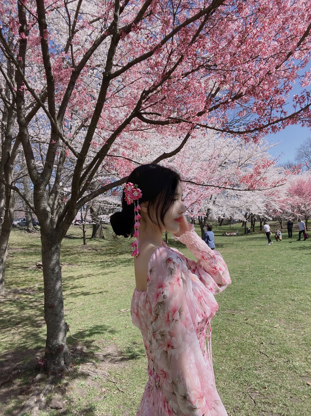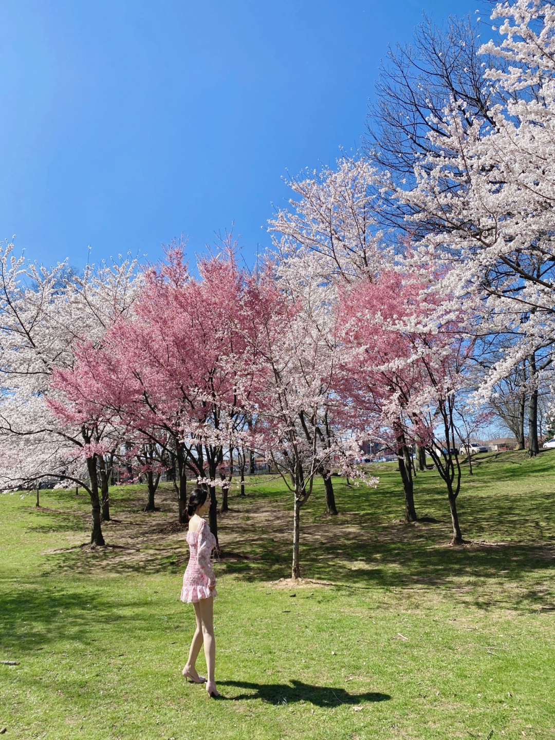 在公园沿着小路两边的樱树林中漫步,选了图中拍照的这个地点停下休息玩乐,这片区域是吉野樱和山樱混杂的,一眼望去的粉嫩渐变色太少女心了。🌸🌸🌸