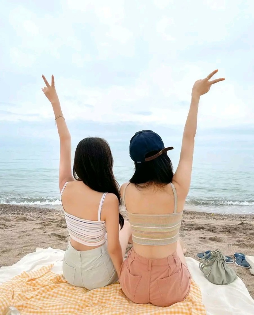 带着闺蜜去海边沙滩拍美照