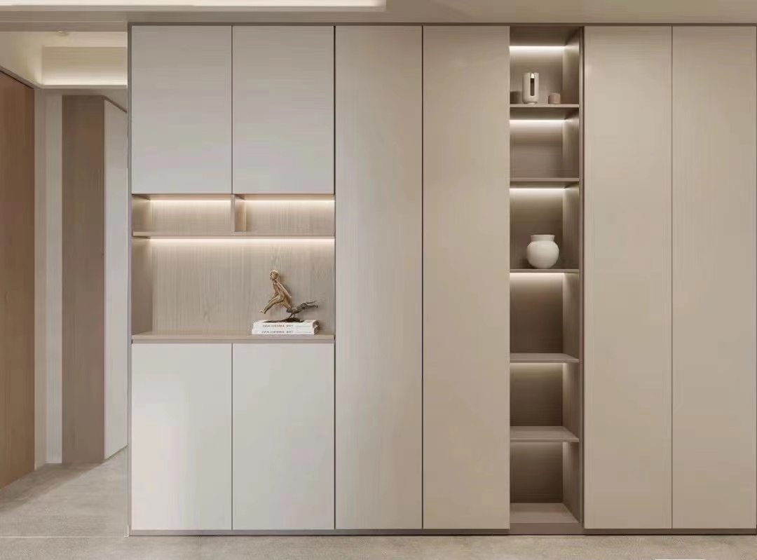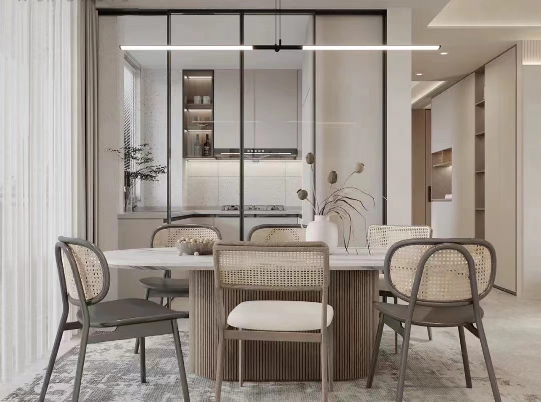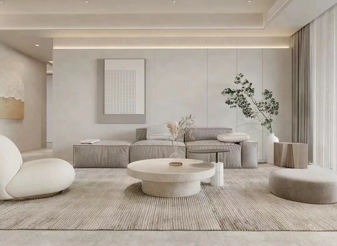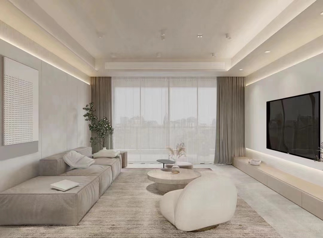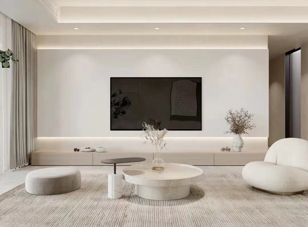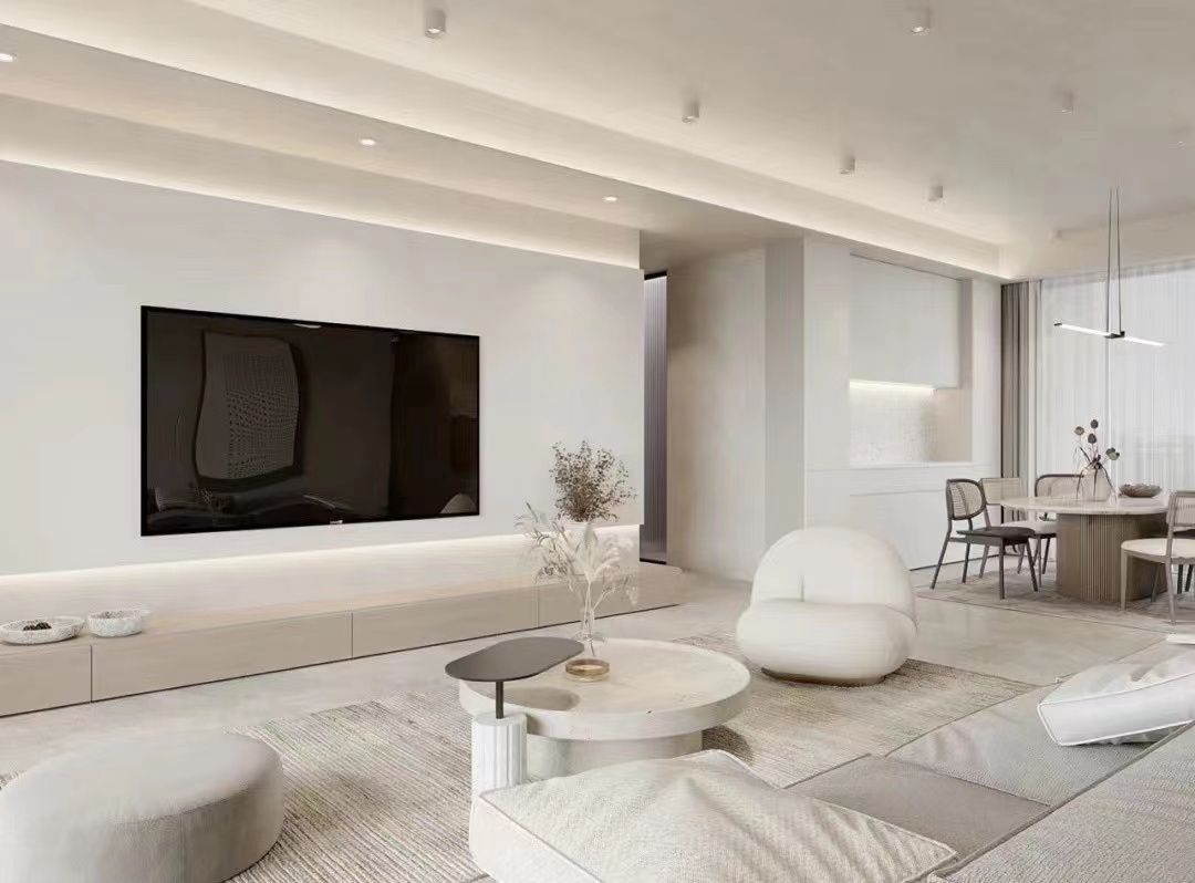 在客厅电视背景设计上采用了极简白色艺术漆,整体大气简洁!