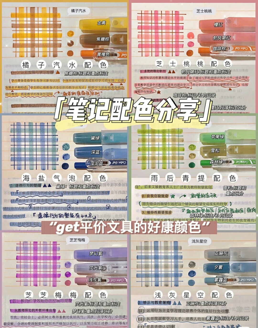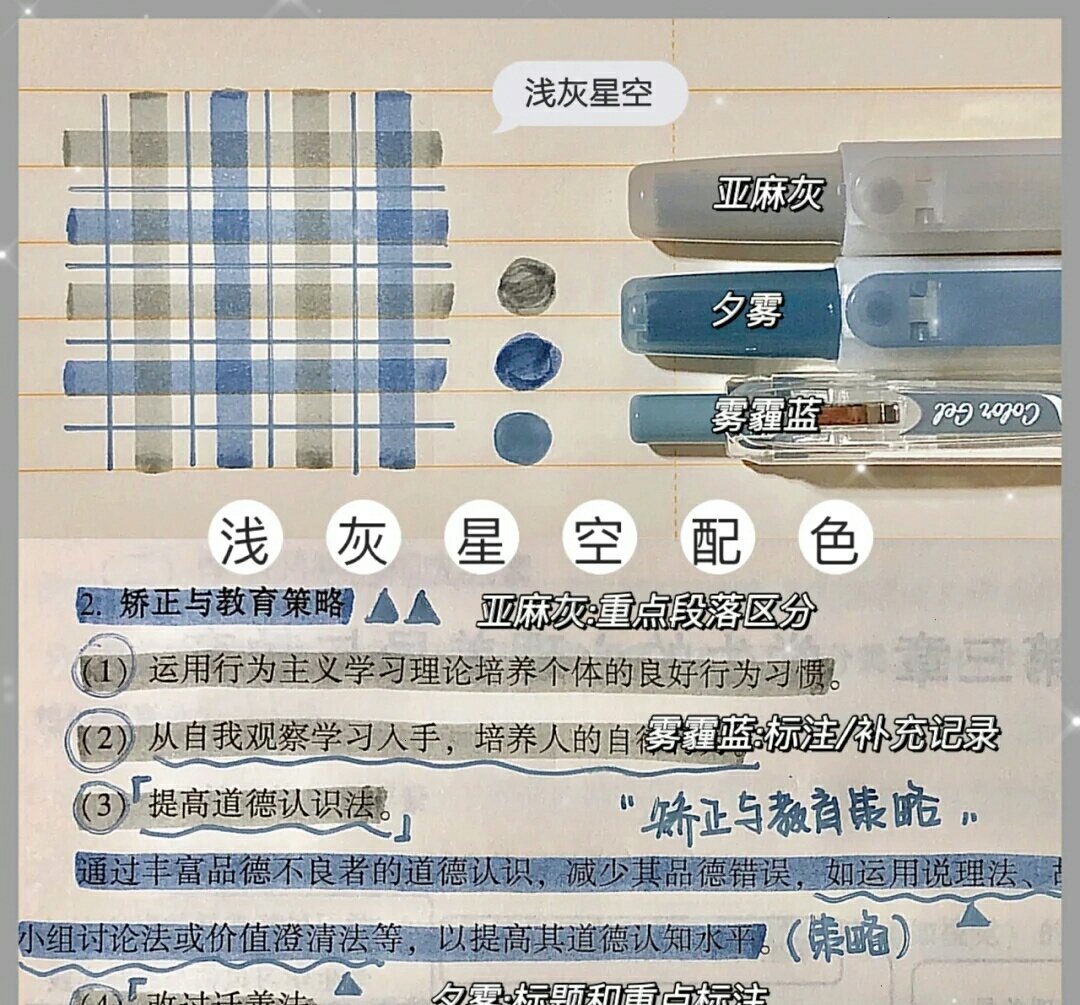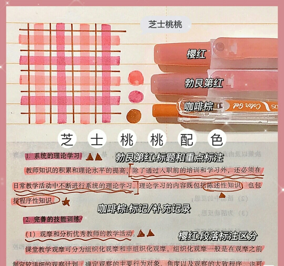 今天给大家分享的是我整理出来的一些笔记配色的分享!精确到了3支笔的颜色!分主次重点和标记补充!简单又方便!