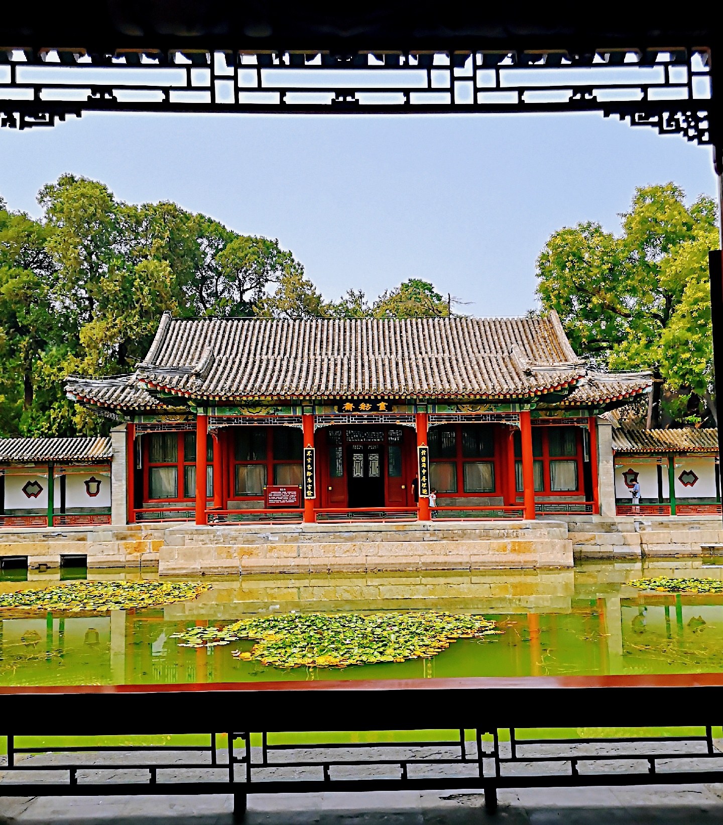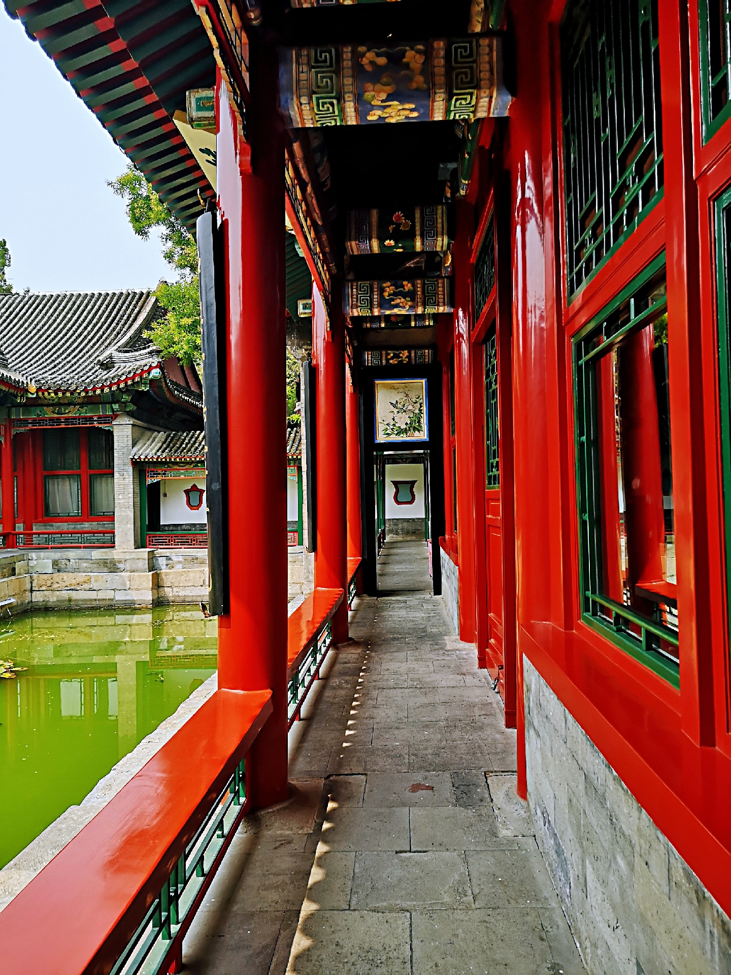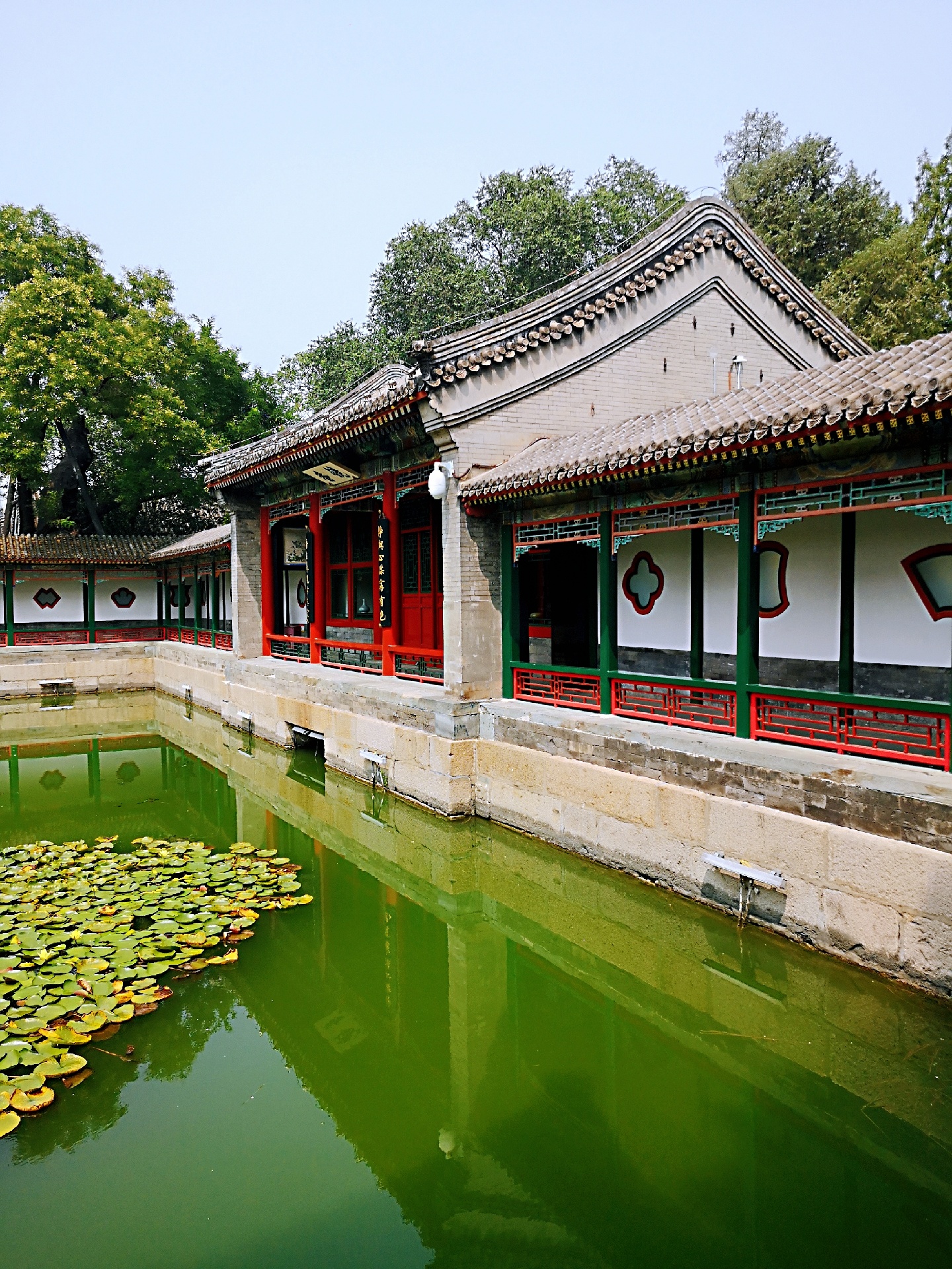 🌿🌿🌿🌸🌸🌸~北海公园~画舫斋~🌸🌸🌸🌿🌿🌿~画舫斋 是清代行宫建筑,在北海东岸。称水殿。这是一座以方形水池为中心,回廊四匝的幽静庭院。主体建筑坐北朝南,东西为"镜香"、"观妙"二室。建于清乾隆二十二年(1757年),是一处掩映在山林中的独立院落。前殿为“春雨淋塘”,中有水池,北为正殿“画舫斋”。东西各有一处精巧别致的院落,东为“古柯庭”,西为“小玲珑”。整个画舫斋朱廊环绕,结构精巧,环境别致,形似停泊在北海湖边的一条大船……🌸🌸🌸🌿🌿🌿~2021.08.07.拍摄于北京~北海公园~园中园~画舫斋~🌸🌸🌸🌿🌿🌿