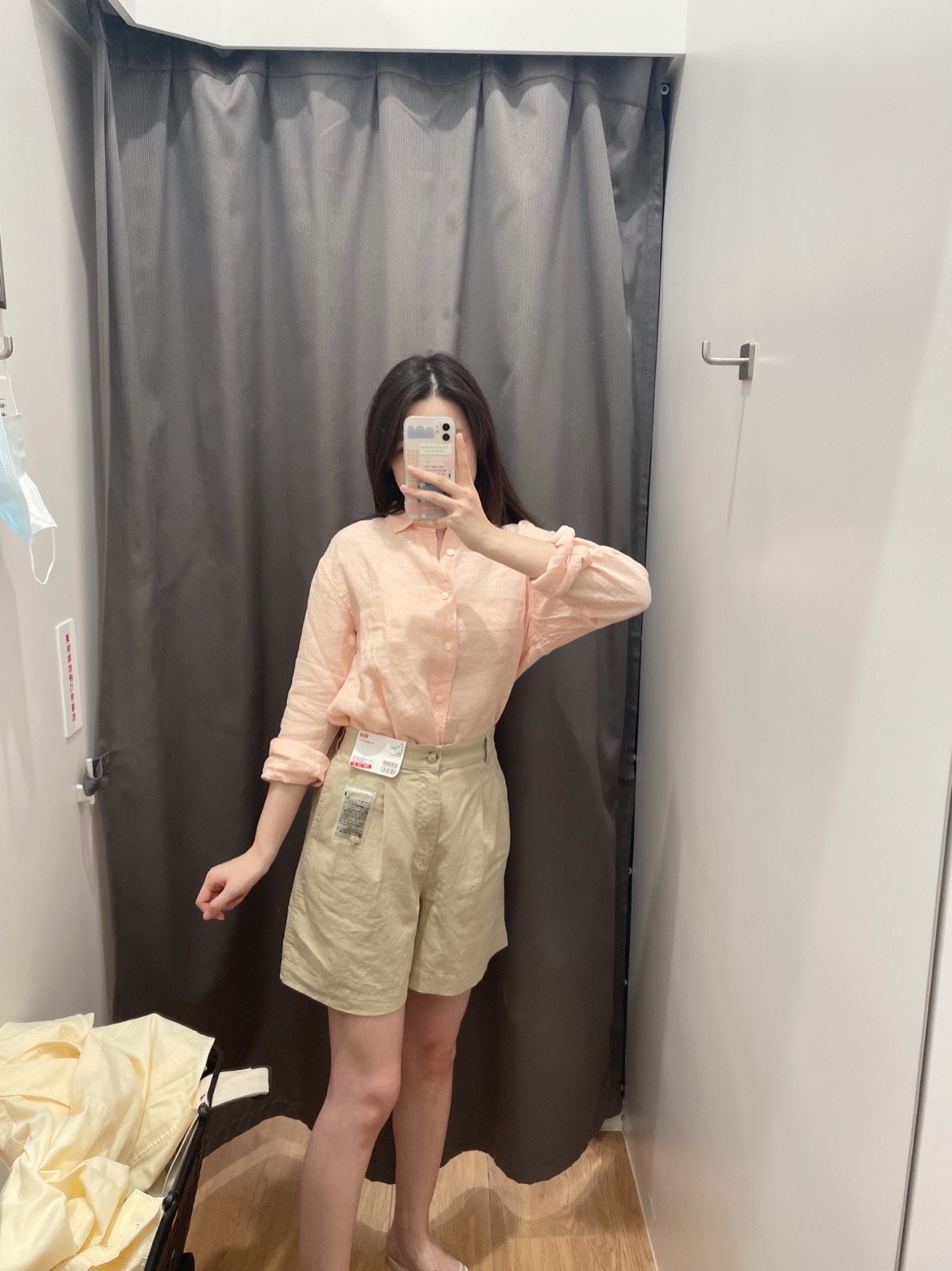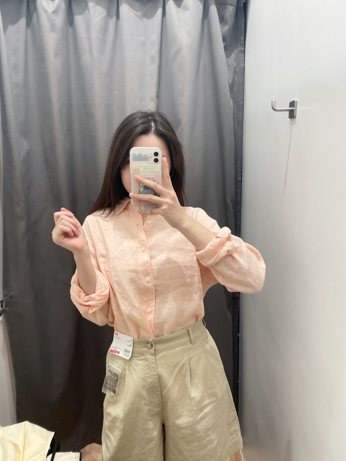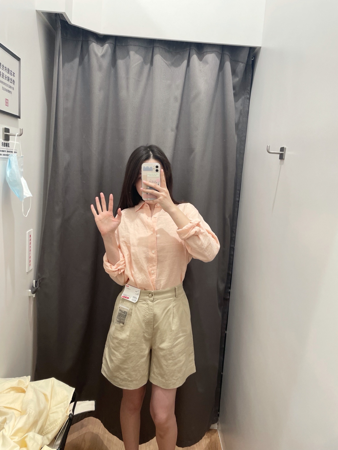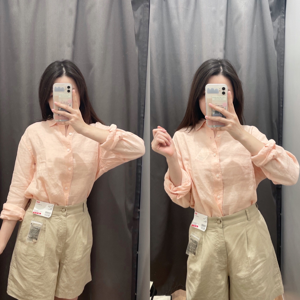 浅橘色衬衫+卡其西裤