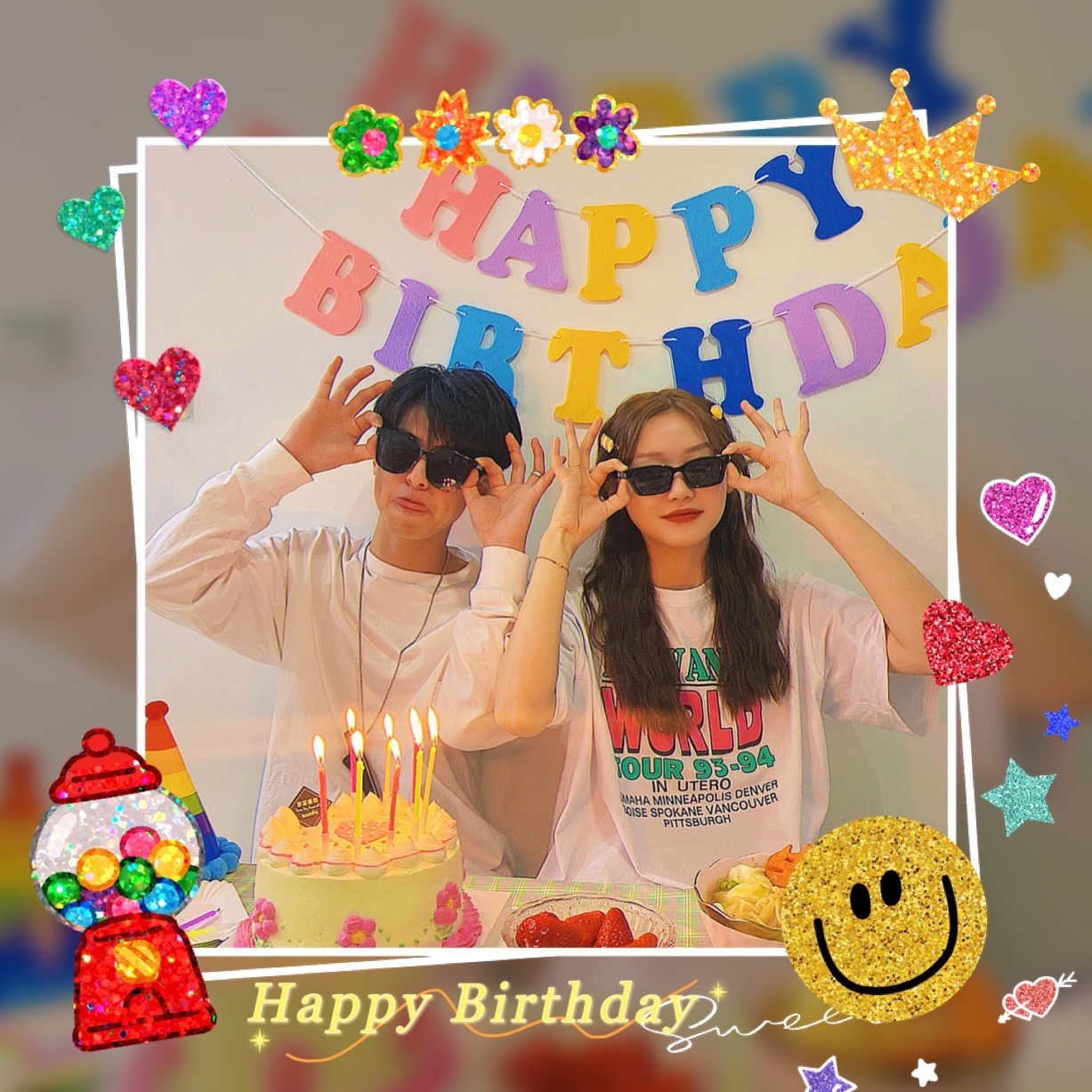 Blingbling复古贴纸情侣拍照生日快乐蛋糕❤️图源网络-美图社区-美图秀秀