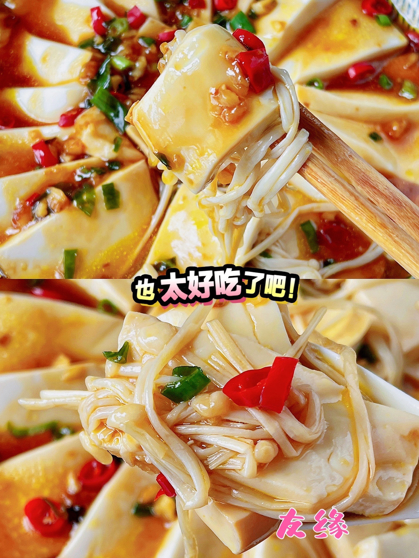 💕今天给大家带来一道简单下饭的蒜蓉金针菇蒸豆腐~低脂低卡✅嫩滑鲜美✅好吃不胖~
