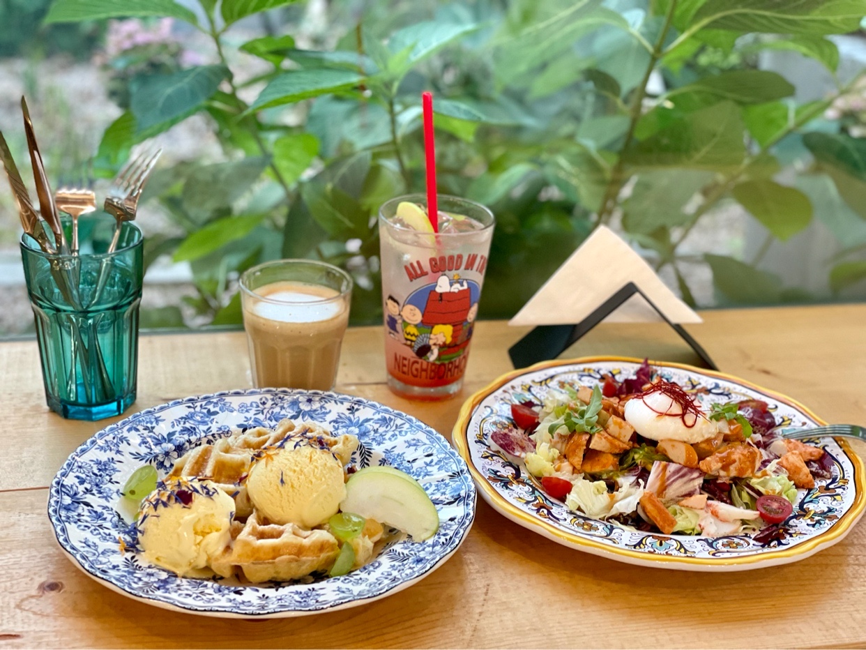 店内的饮品和菜品味道也非常的nice,冰激凌可颂华夫拼盘(单吃可颂味道一般但是和冰激凌一起绝绝子)和烤鸡肉时疏拼盘是我的最爱!(都给我点!)