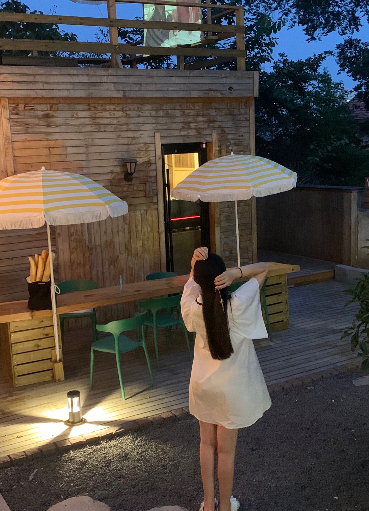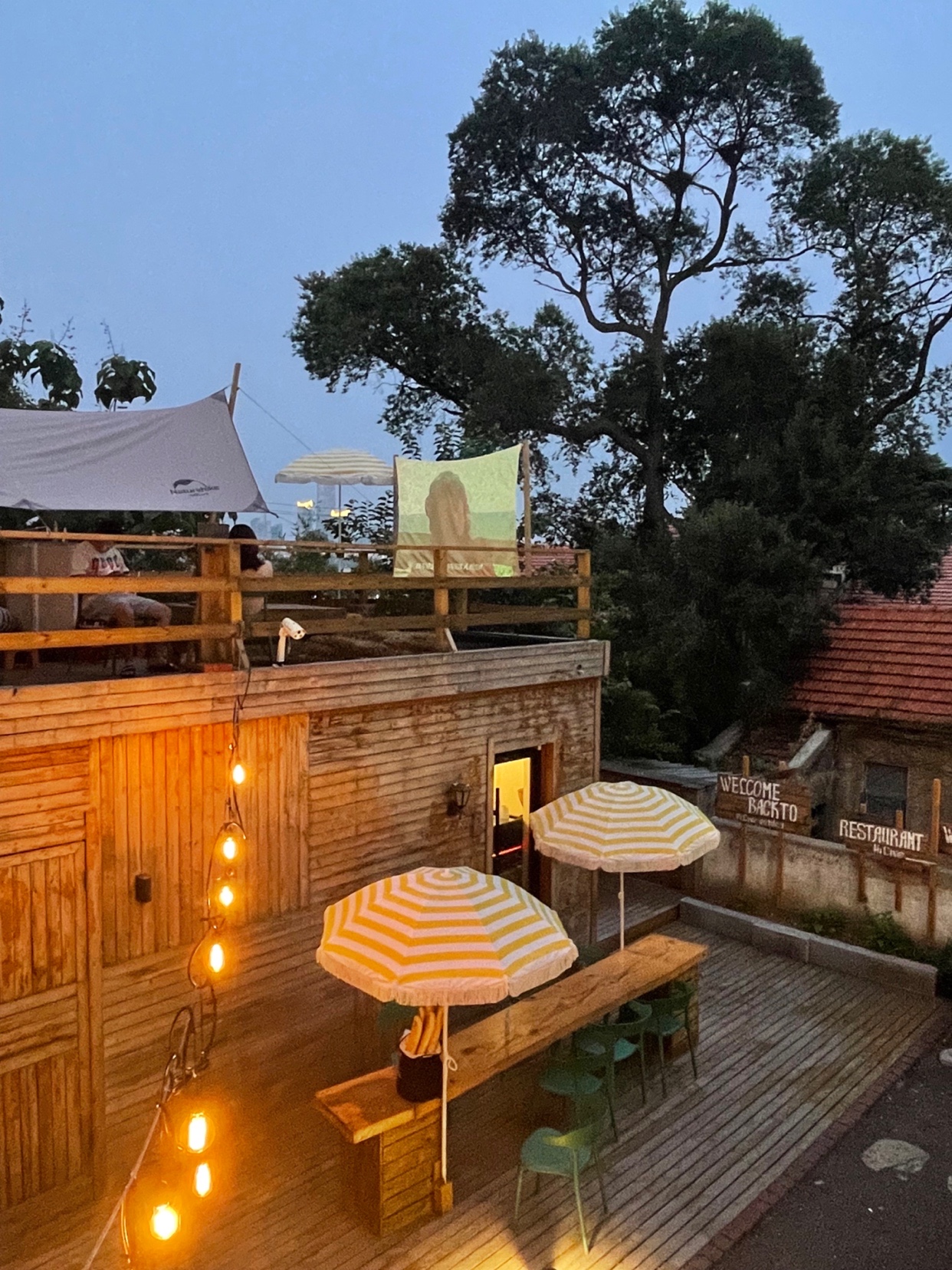 夏天到了傍晚7点会开始播放露天电影,建议仙女们在这拍拍照就可以了,千万不要坐下来认真的观赏电影,如果有此想法,请喷上十斤花露水(店家贴心的为大家备好了花露水)