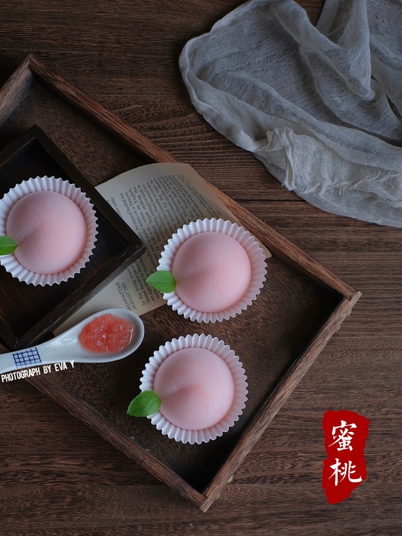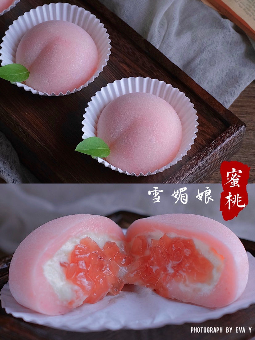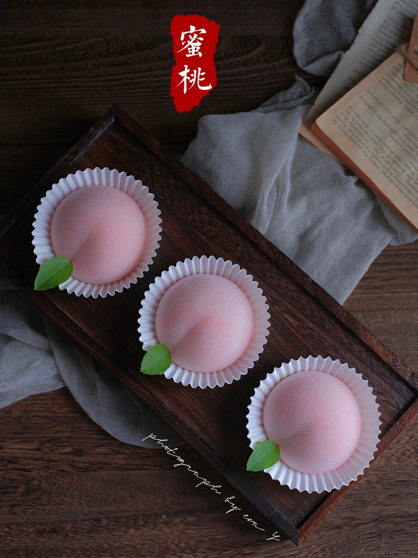 用蛋黄酥盒子可以有助于定型,不会东倒西歪软塌塌,想要桃🍑型雪媚娘,只需要冷藏好后,挨个儿用刀背竖着嵌一下就是活脱脱的水蜜桃啦❗️