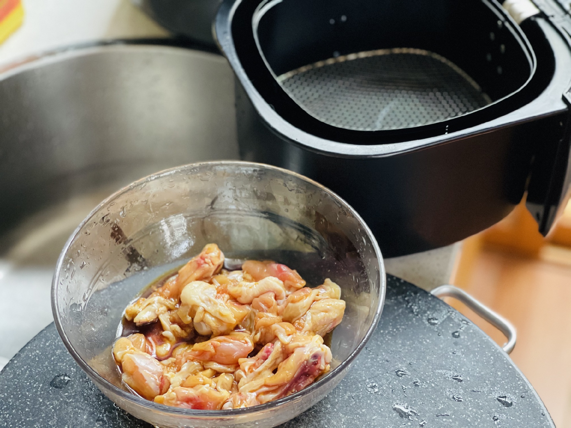 鸡腿肉改刀(好熟)只加了料酒和生抽腌10分钟