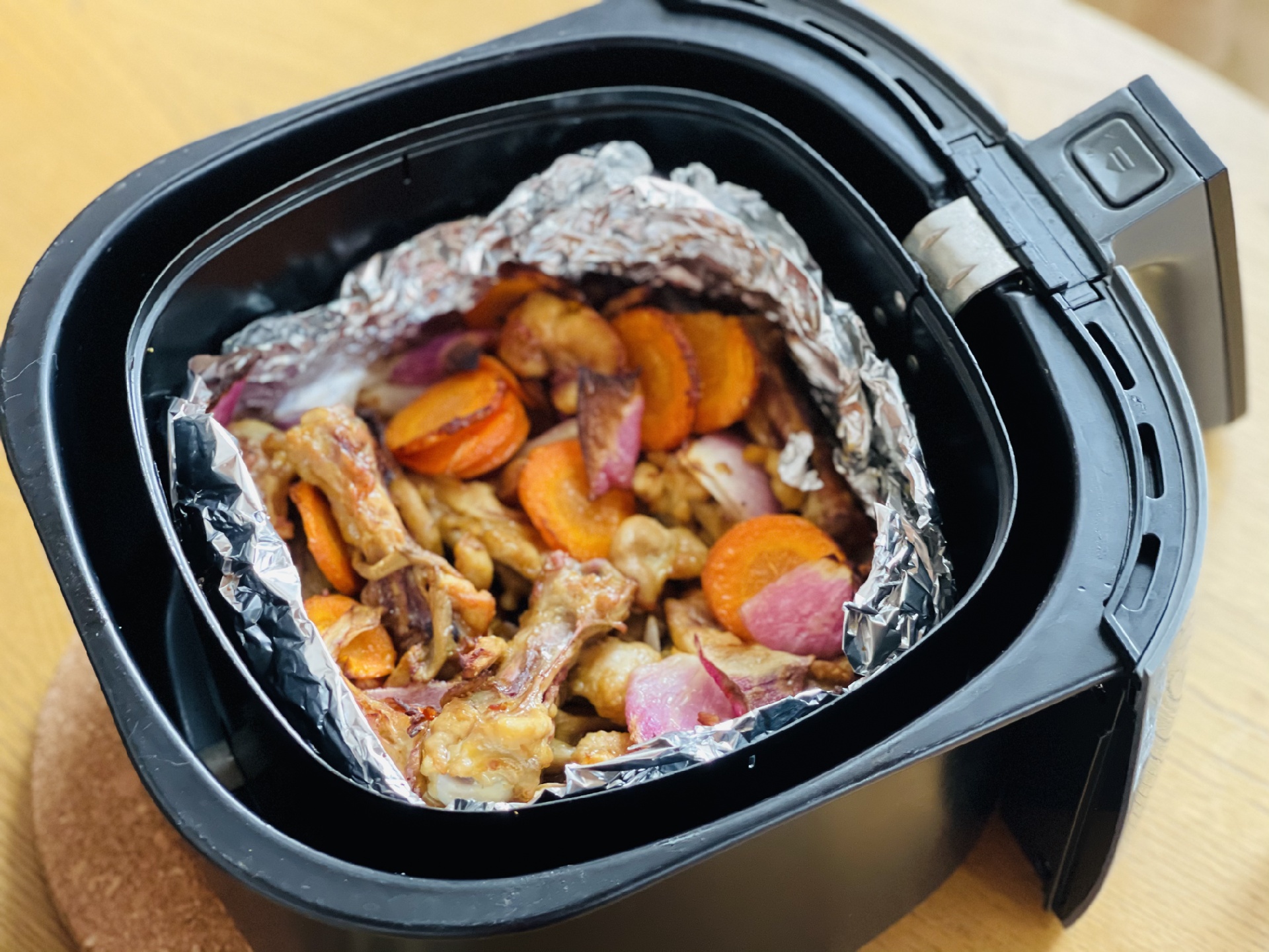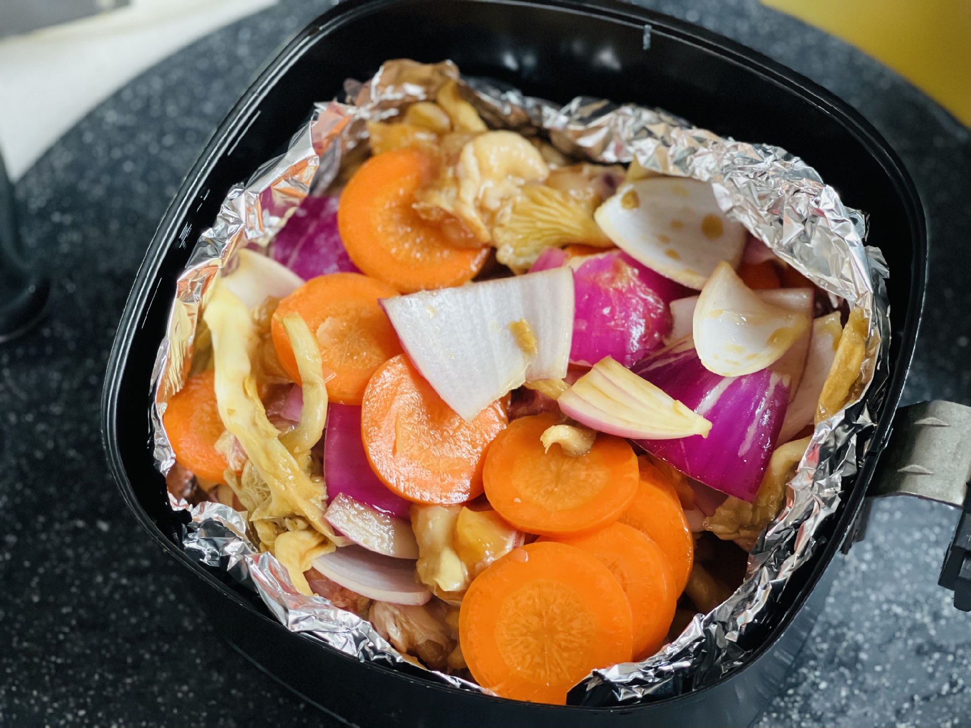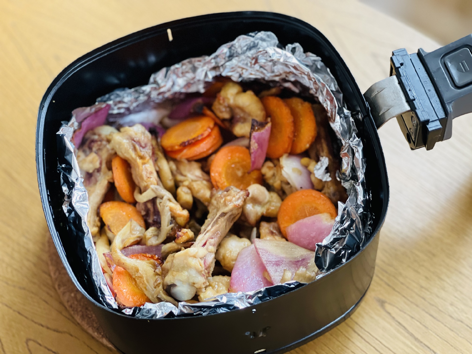 锡纸做了一个小盘方便清洗~用空气炸锅几乎没什么油烟就获得一顿美食~