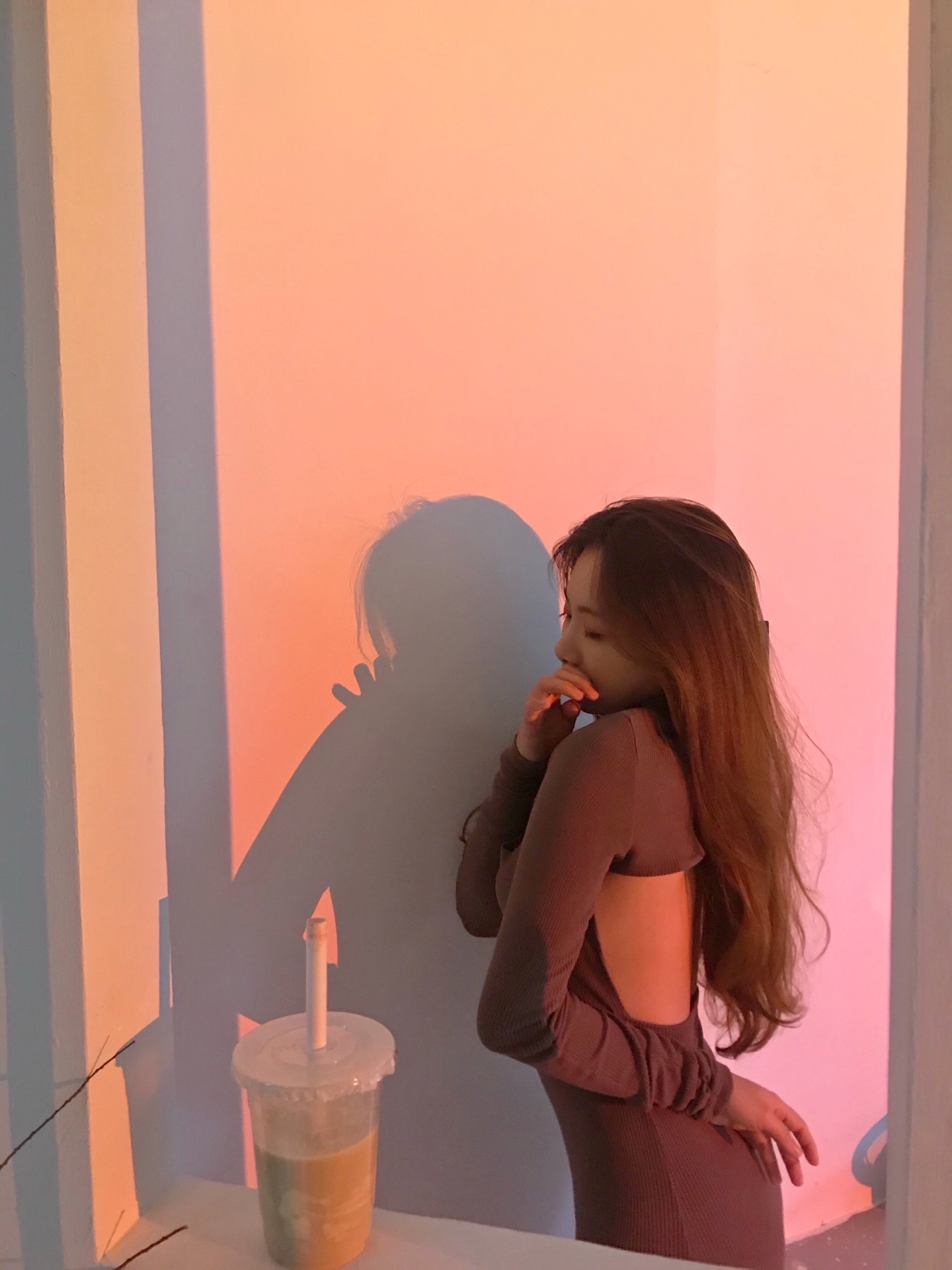 7露侧背影左手放后腰右手捂嘴