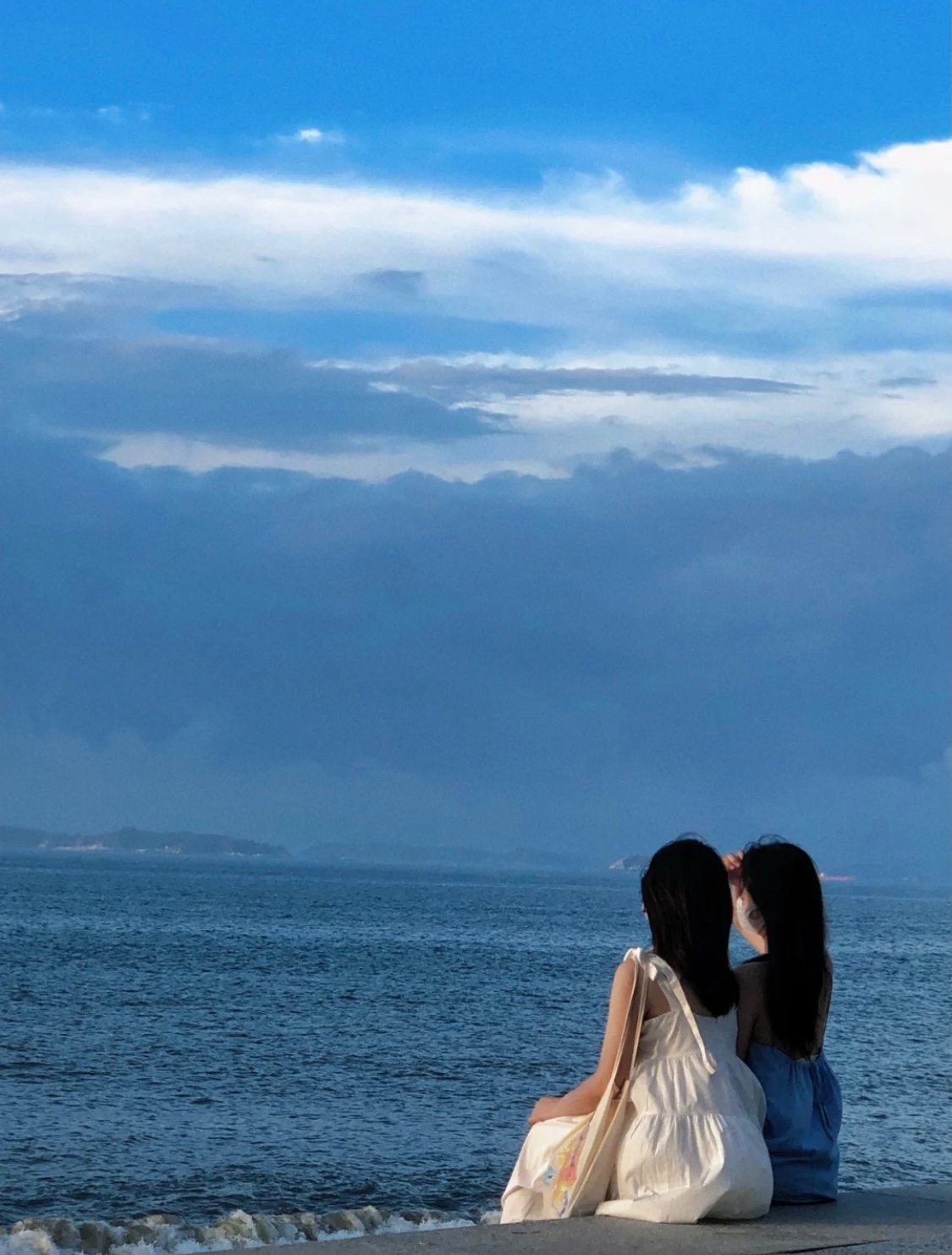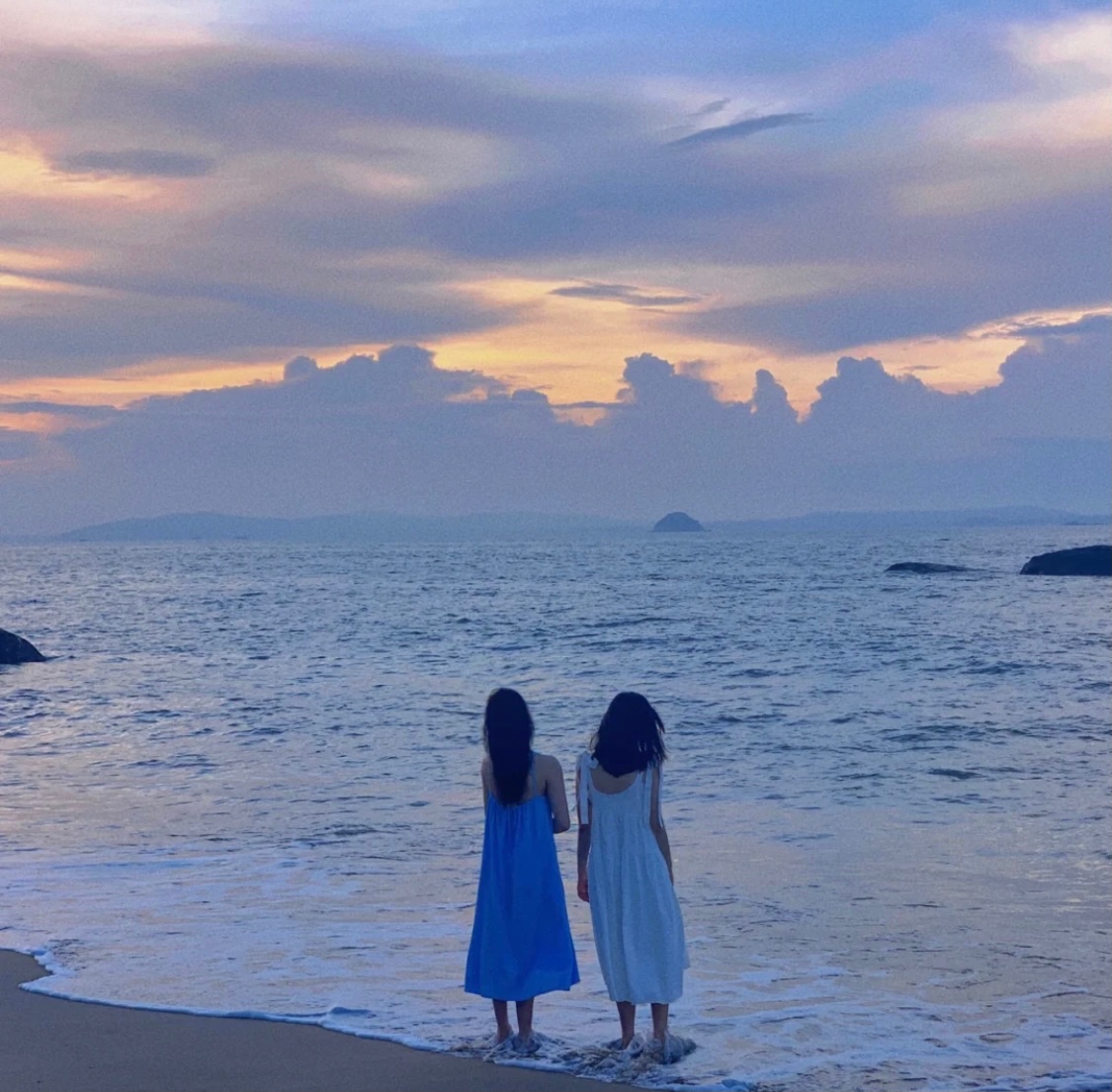 请帮天空和海调出治愈的颜色,让闺蜜照更温馨。