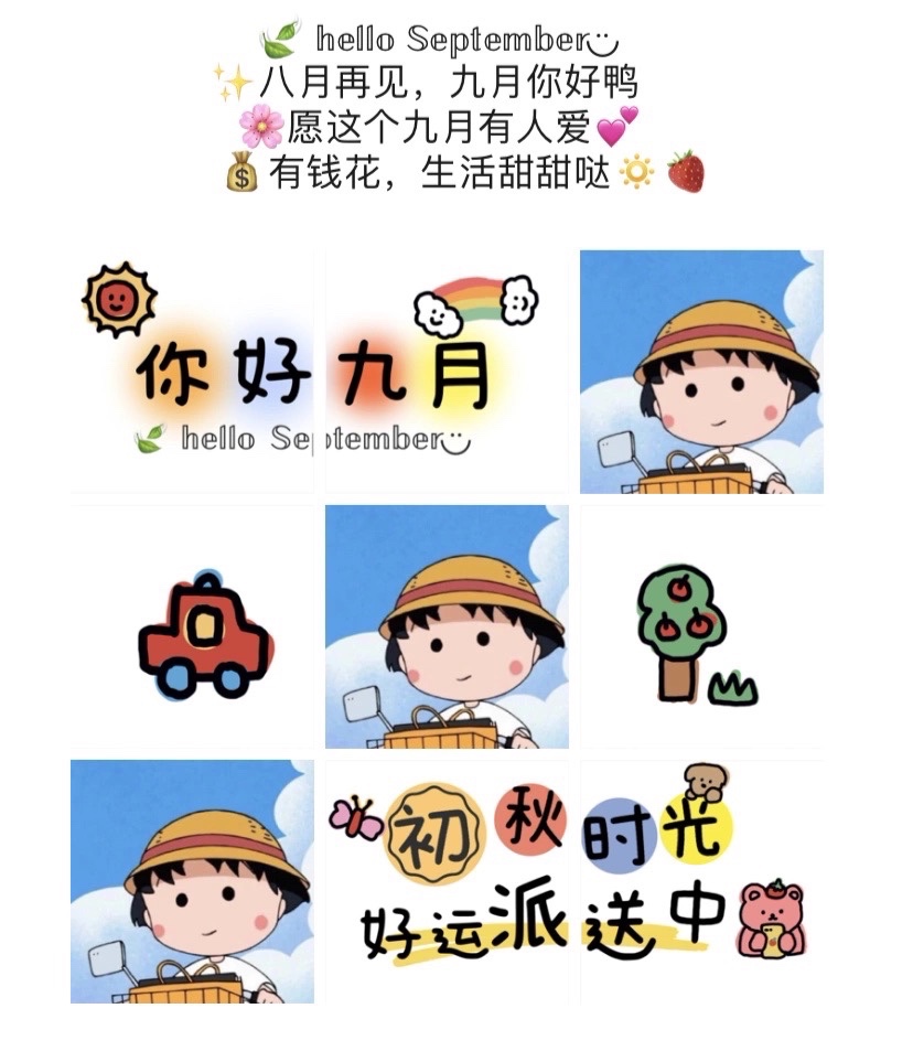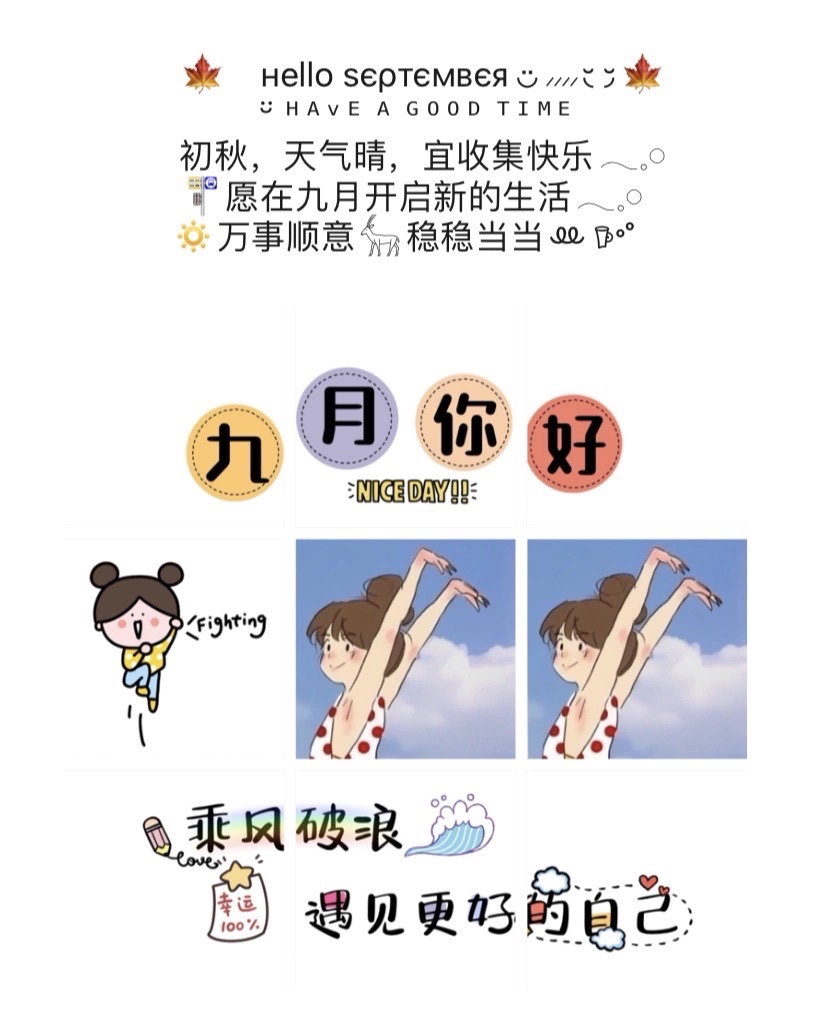 九月你好文案|迎接九月励志句子九宫格素材|||迎接九月文案 | 八月再见 九月你好文案 | 朋友圈九宫格素材