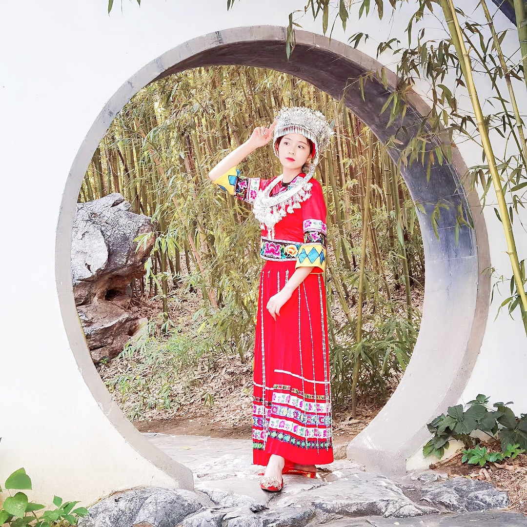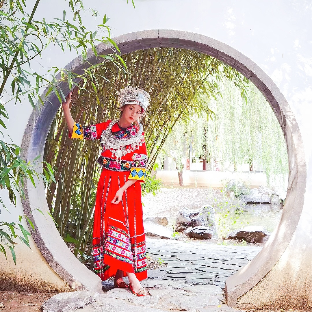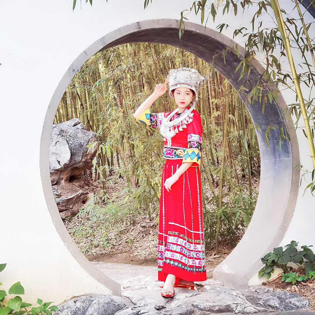 苗族服饰小姐姐拍照姿势,公园写真场景(3)@MT小助手 @MT情报局@MT小美酱@美图秀秀