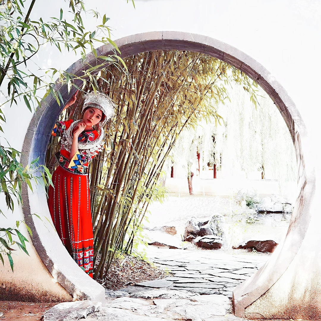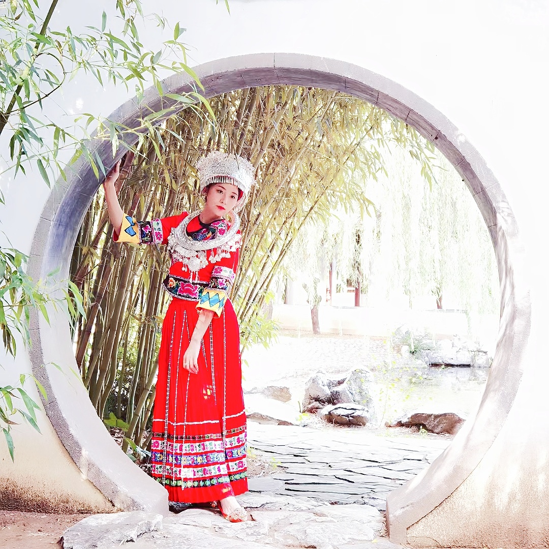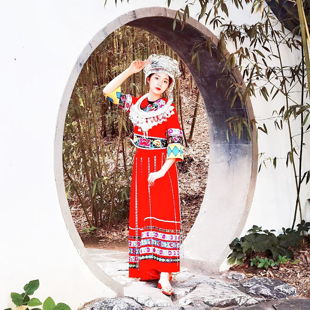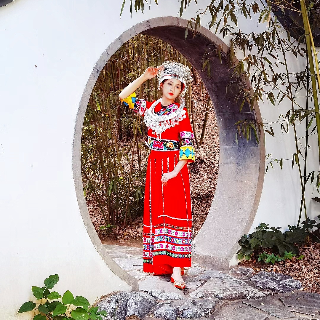 苗族服饰小姐姐拍照姿势,公园写真场景(3)@MT小助手 @MT情报局@MT小美酱@美图秀秀