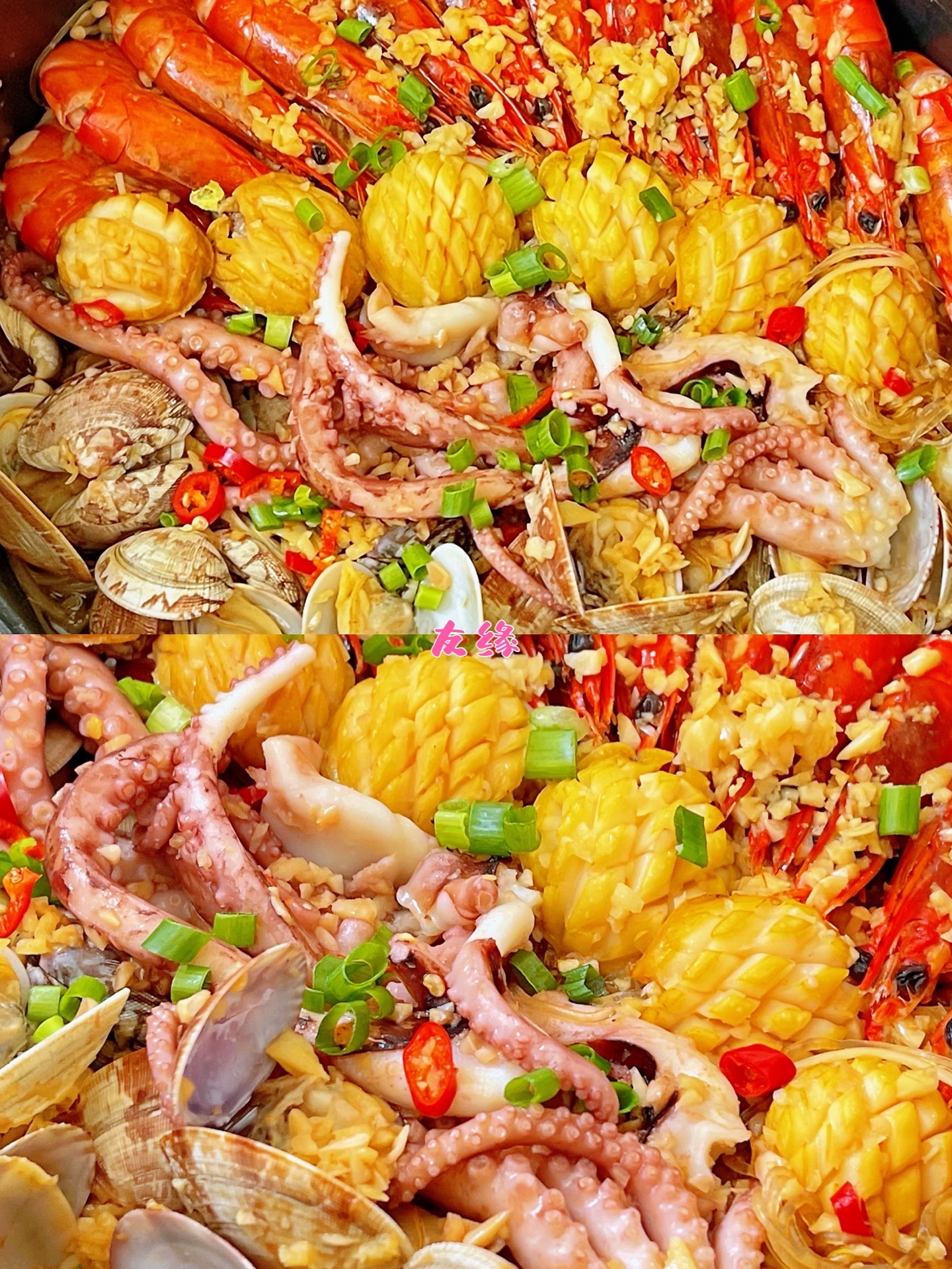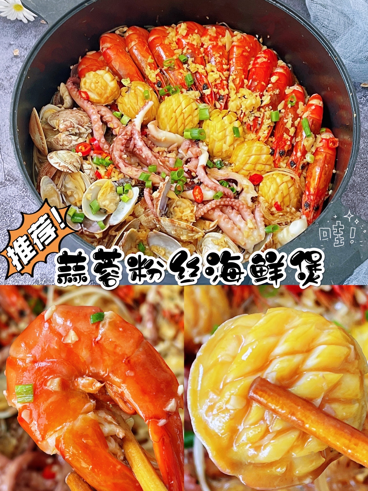 💕这个蒜蓉粉丝海鲜煲真的不得了❗️❗️简直是太太太好吃了❗️❗️做法简单💯只需两步就能做出鲜美无比的海鲜煲~下饭✅简单✅好吃不胖~