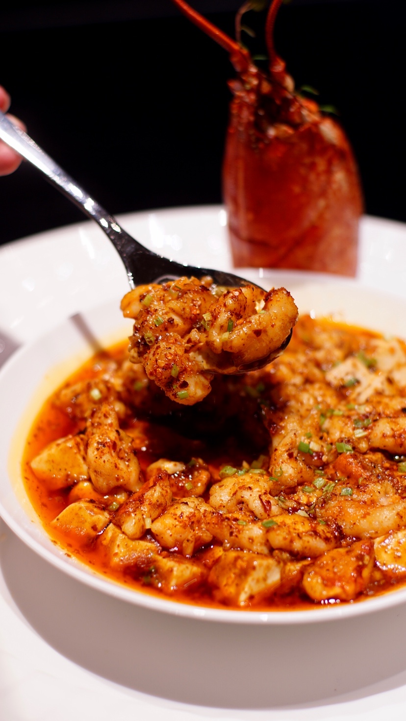 十年花雕醉膏蟹,生腌北极甜虾,两道“冷”开场打开一席热烈。和牛酥软不费牙,表面微脆酱汁带甜。滋补松茸汤里捞出的汤料堆了满满一盆,煲到化骨的鸡爪子都被我挑了吃。葱烧关东参咸鲜入味了,配一口米饭正好不多不少。杭越荟升级主打粤菜,五花肉酸萝卜烧粉滑溜溜,雪山包里叉烧香。干贝酱蒸东星斑,麻婆豆腐烧蓝龙虾,芦笋白果炒澳带,香脆凤梨九肚鱼...杭越的海鲜底子是信手拈来。吃到最尾,试着再夹一筷古铜麻香鸡,依然脆皮。