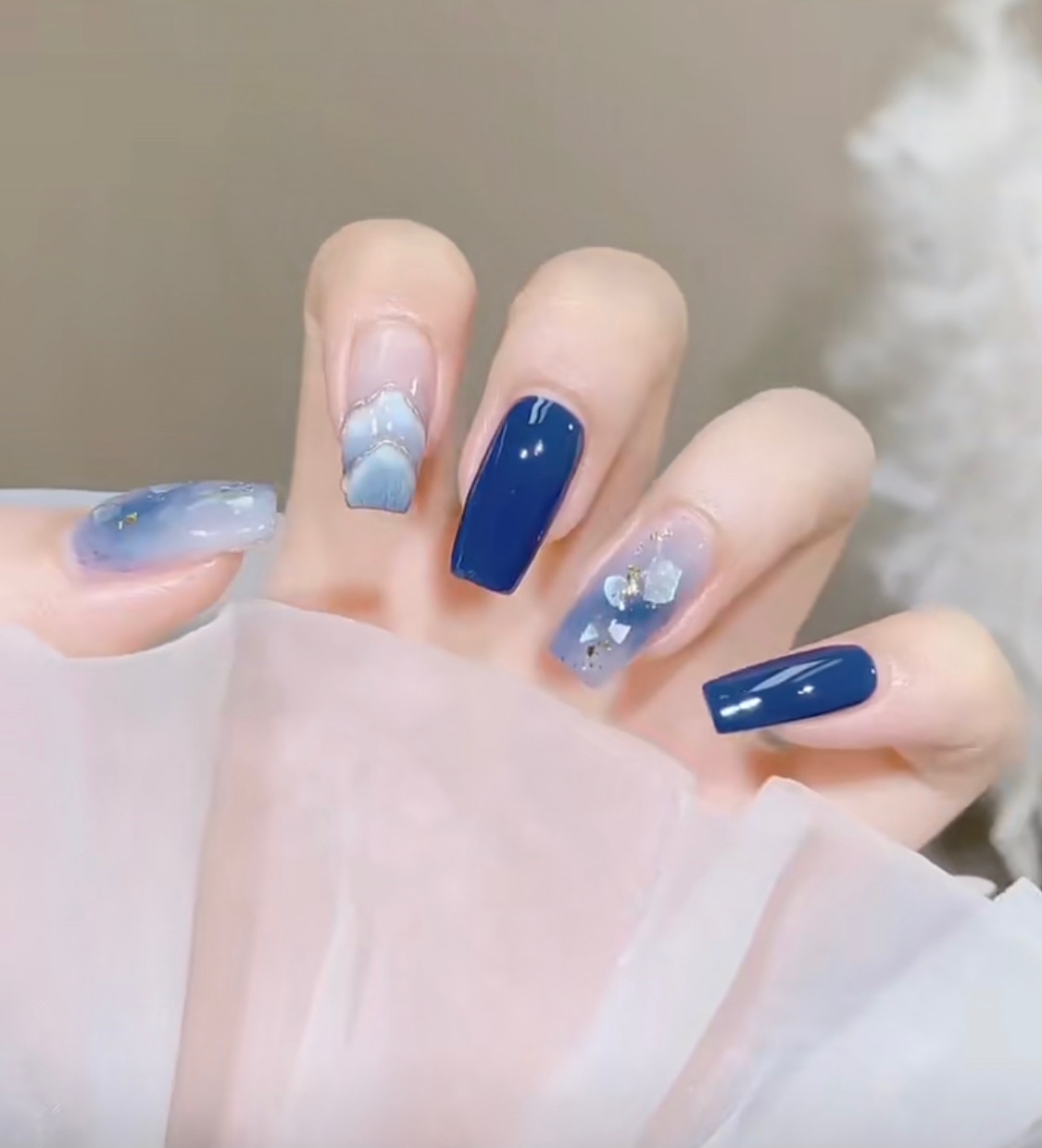 雾霾蓝海洋晕染美甲