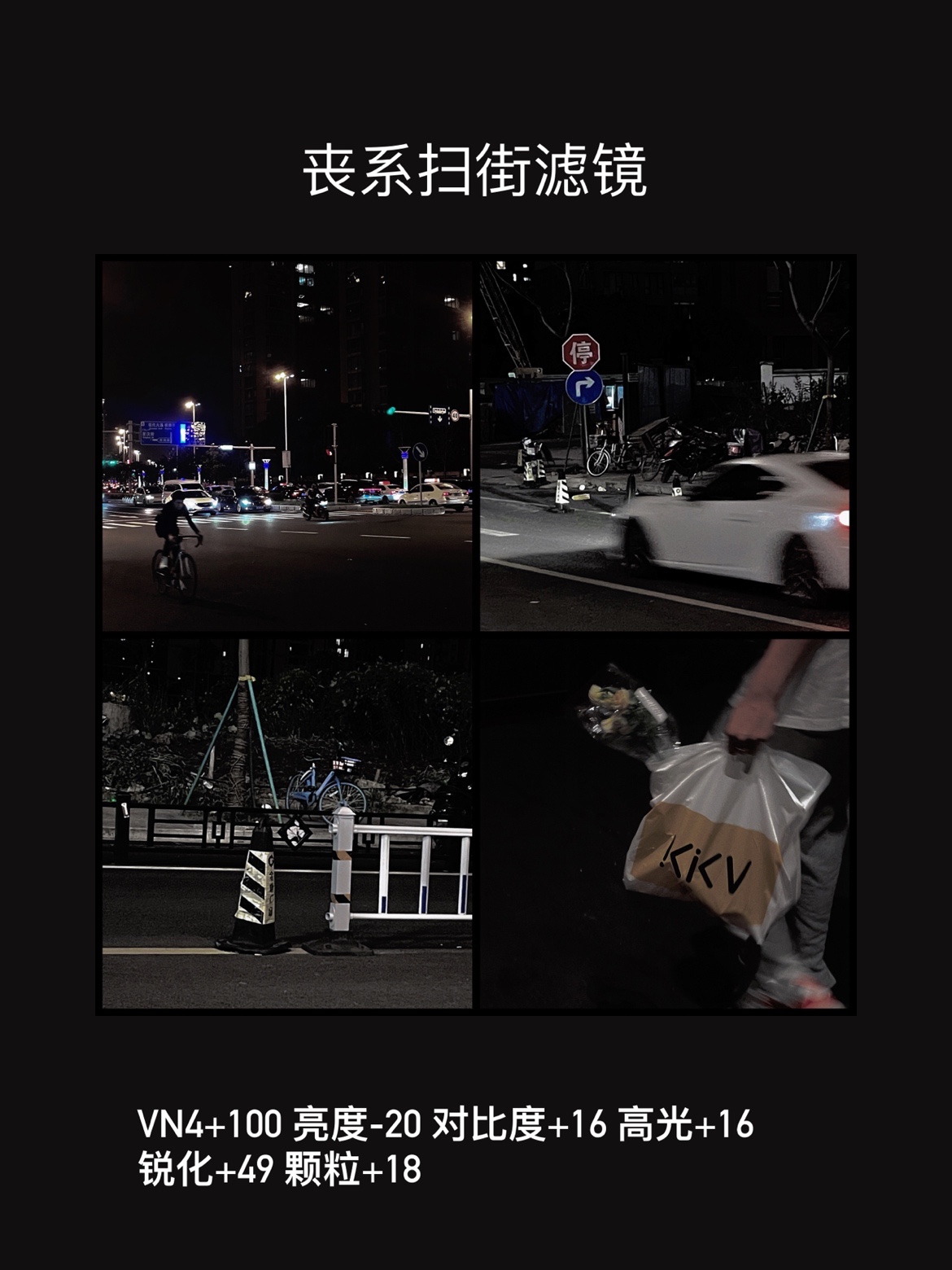 VN4+100 亮度-20 对比度+16 高光+16 锐化+49 颗粒+18