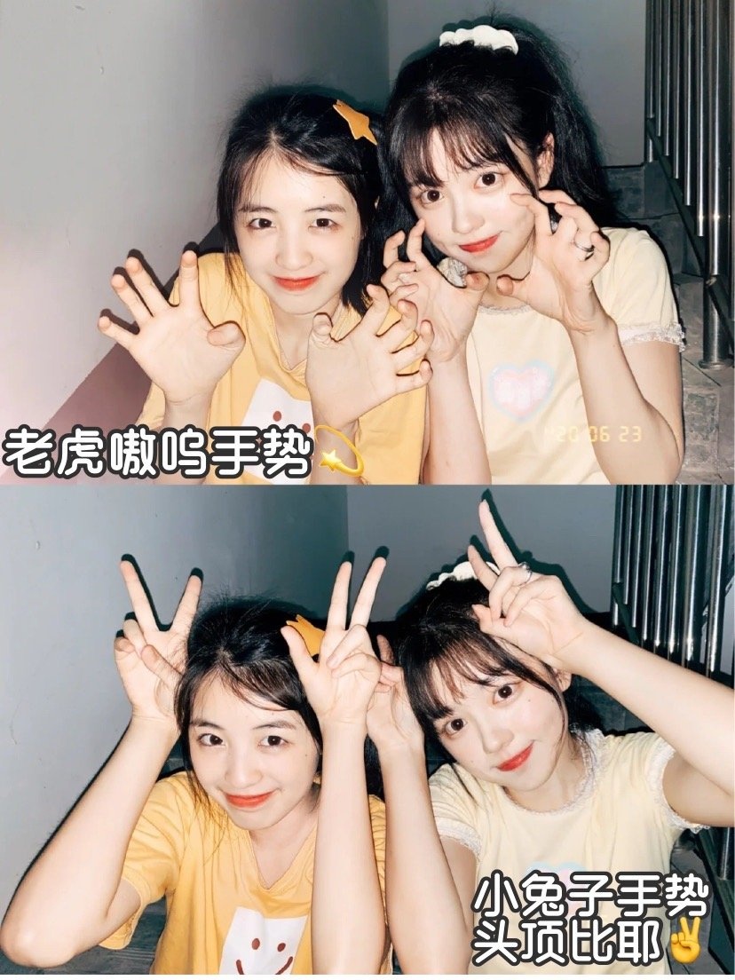 有手就会的比手势姿势~只需要动动小手戳脸捏脸、或者学小动物都很可爱哦🐰